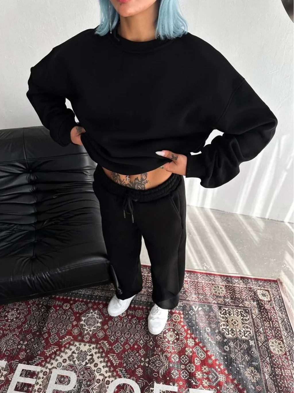 Kışlık Bisiklet Yaka Basic Eşofman Takım - Siyah