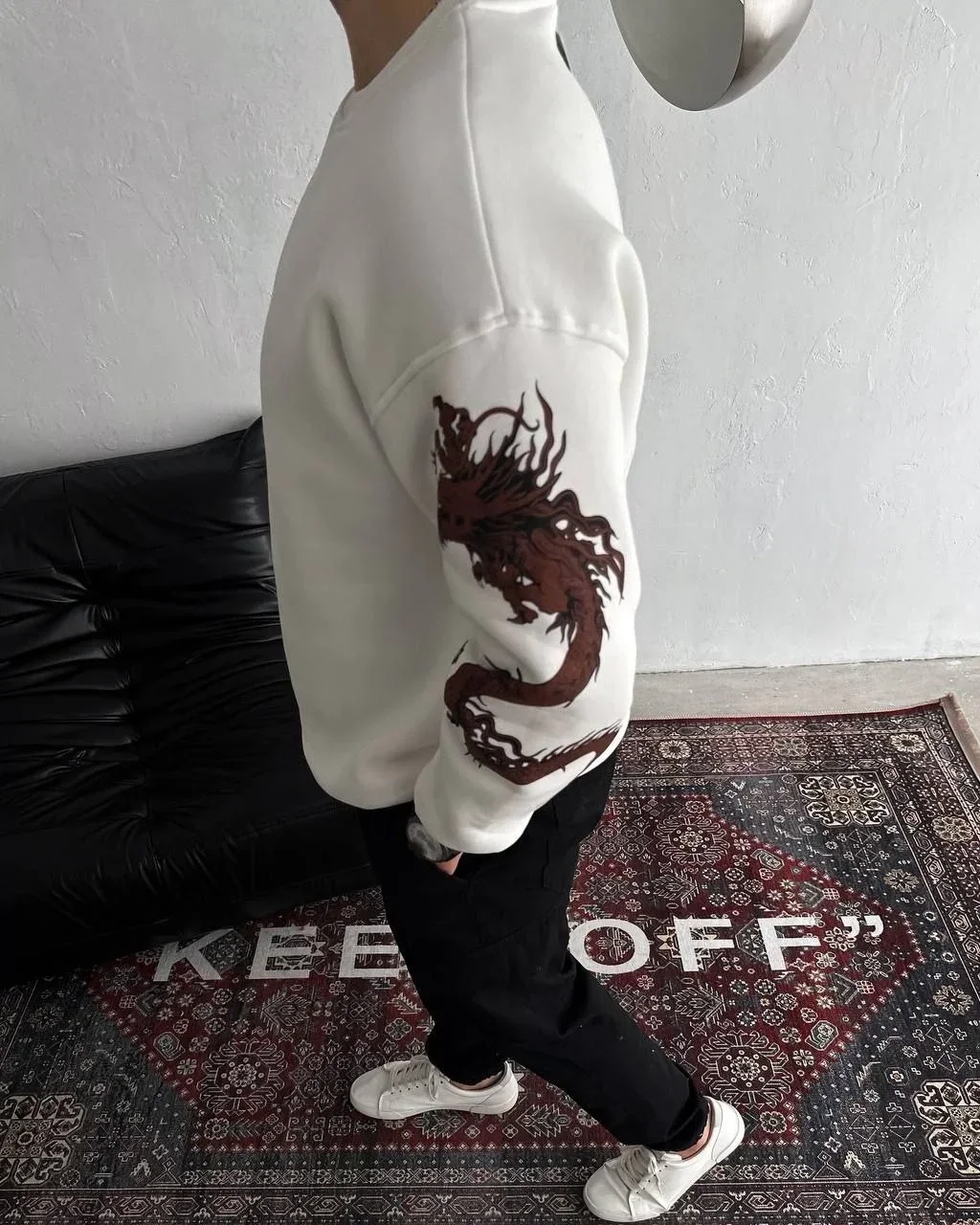 Kışlık Bisiklet Yaka Baskılı SweatShirt - Beyaz