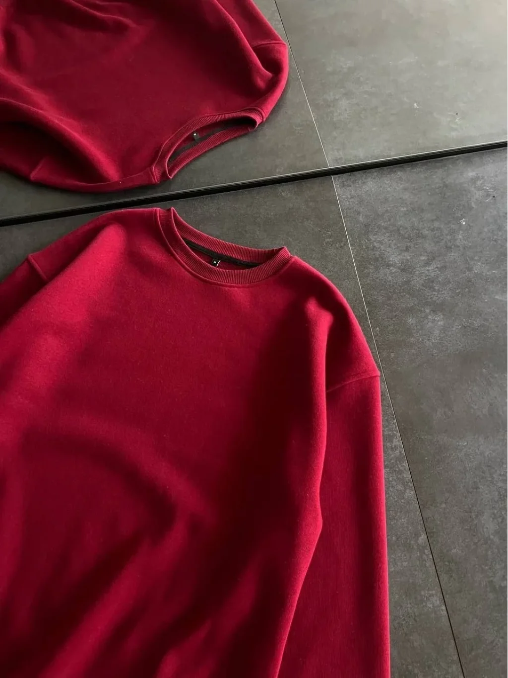 Kışlık Bisiklet Yaka Üç İplik Basic SweatShirt - Bordo
