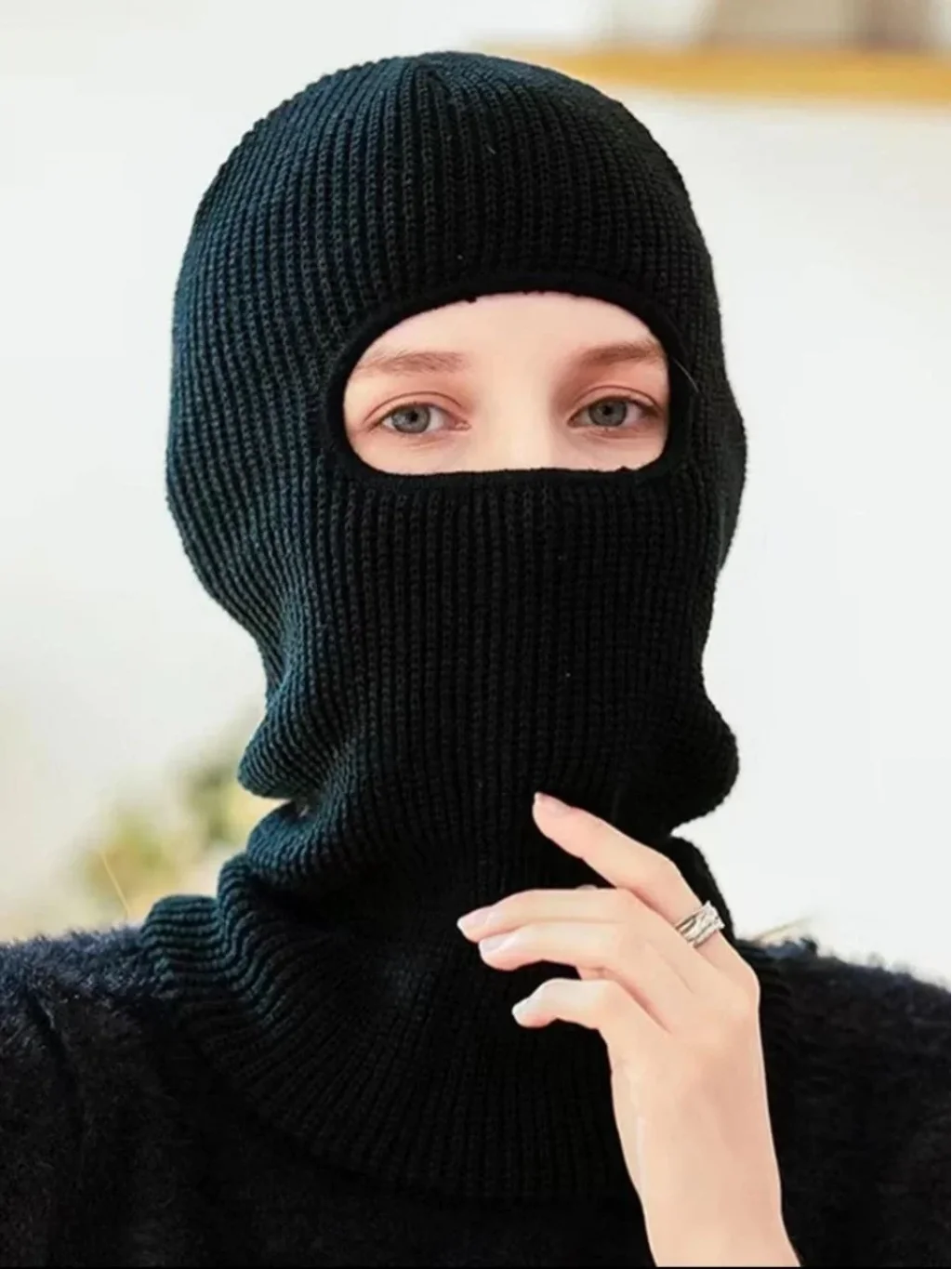 Kışlık Kar Maske Dokuma Triko Bere - Siyah