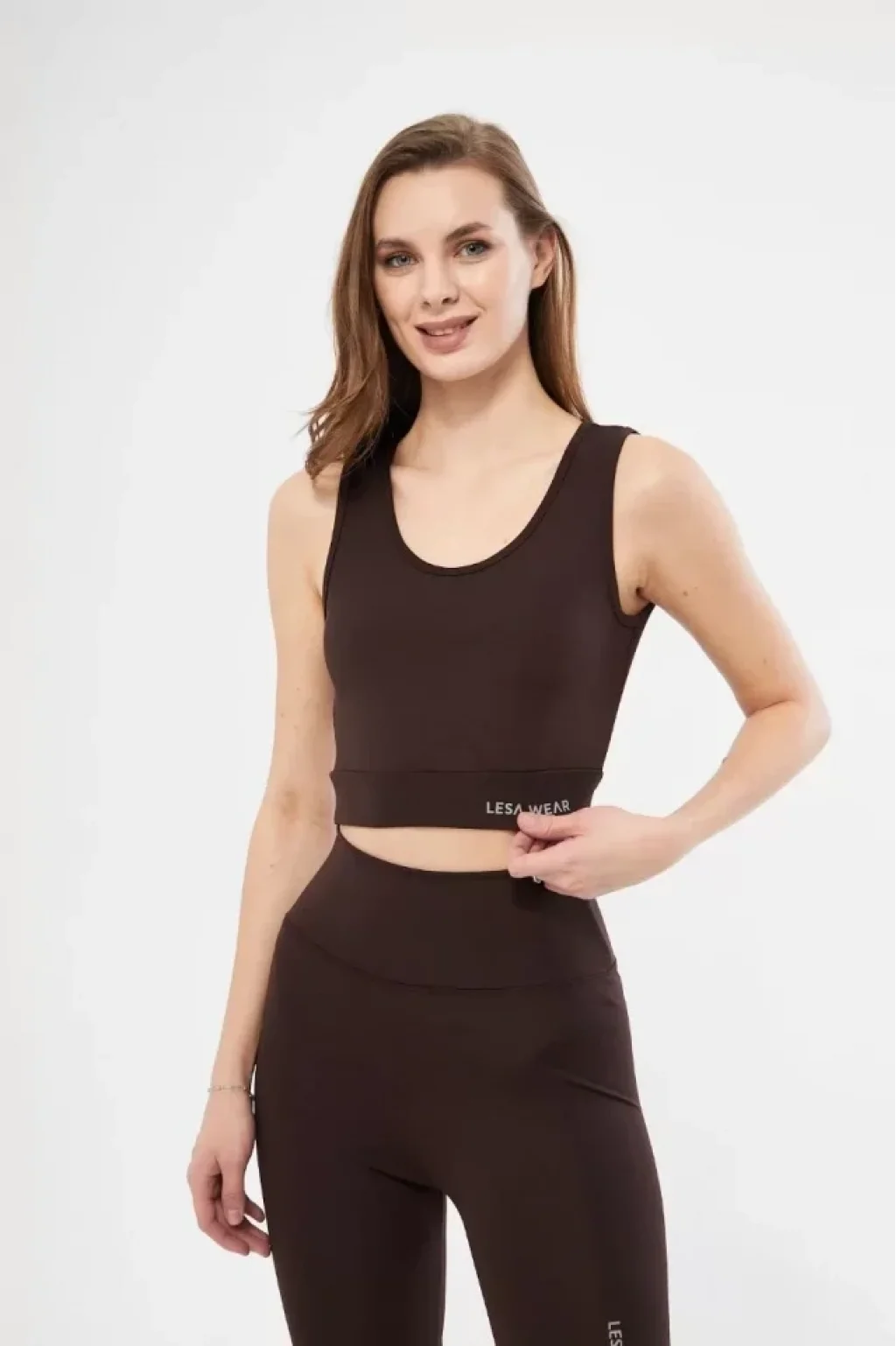 Kolsuz Dalgiç Baskılı Crop - Kahve