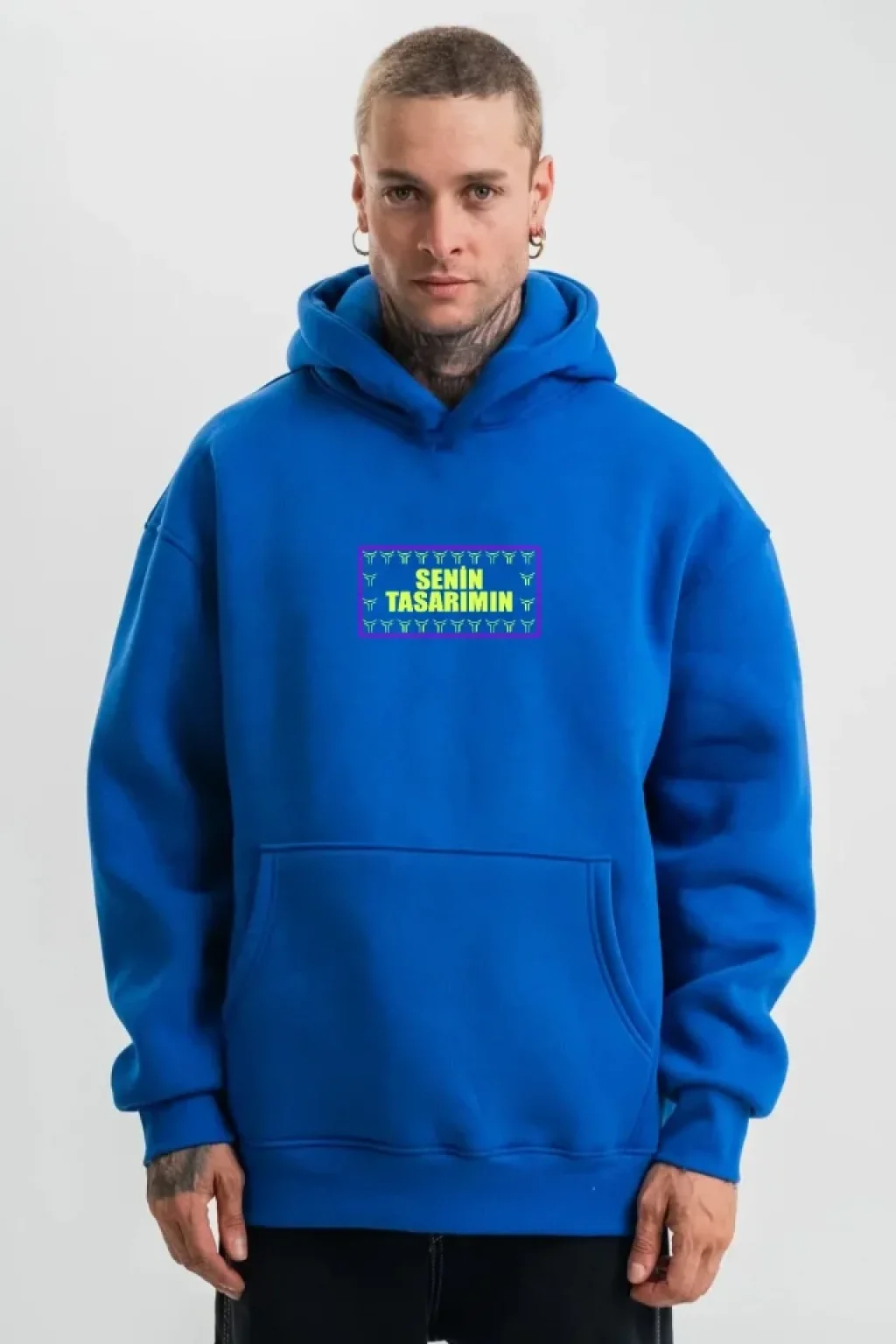 Ön Arka Kapüşonlu Premium SweatShirt - Mavi