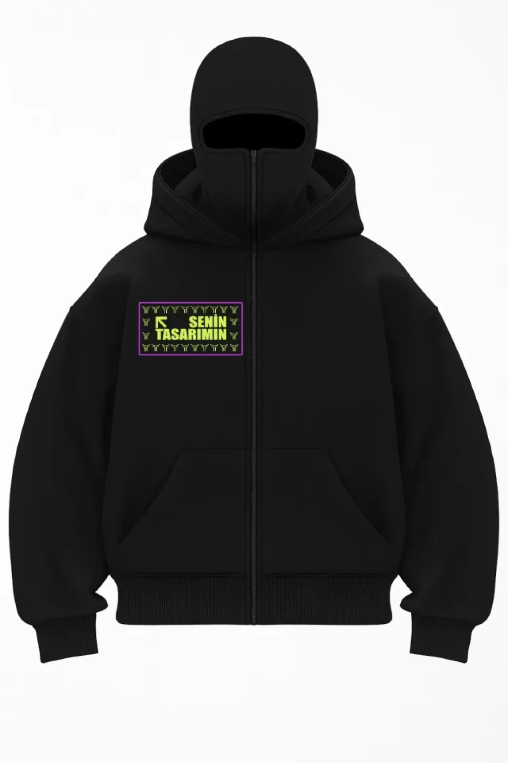 Ön Arka Samuray Kapüşonlu ZIP Fermuarlı Kapüşonlu Sizin Tasarımınız SweatShirt - Siyah