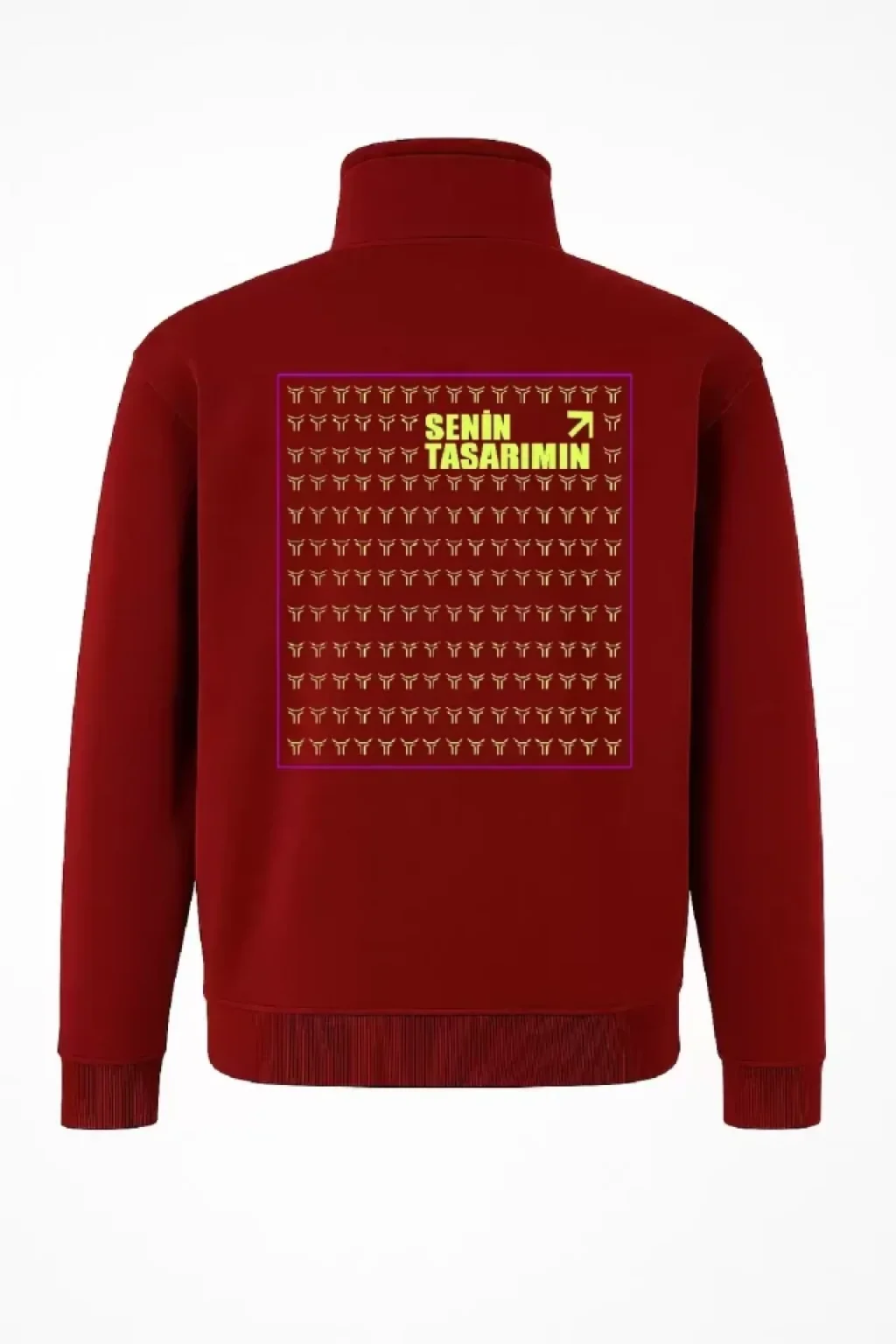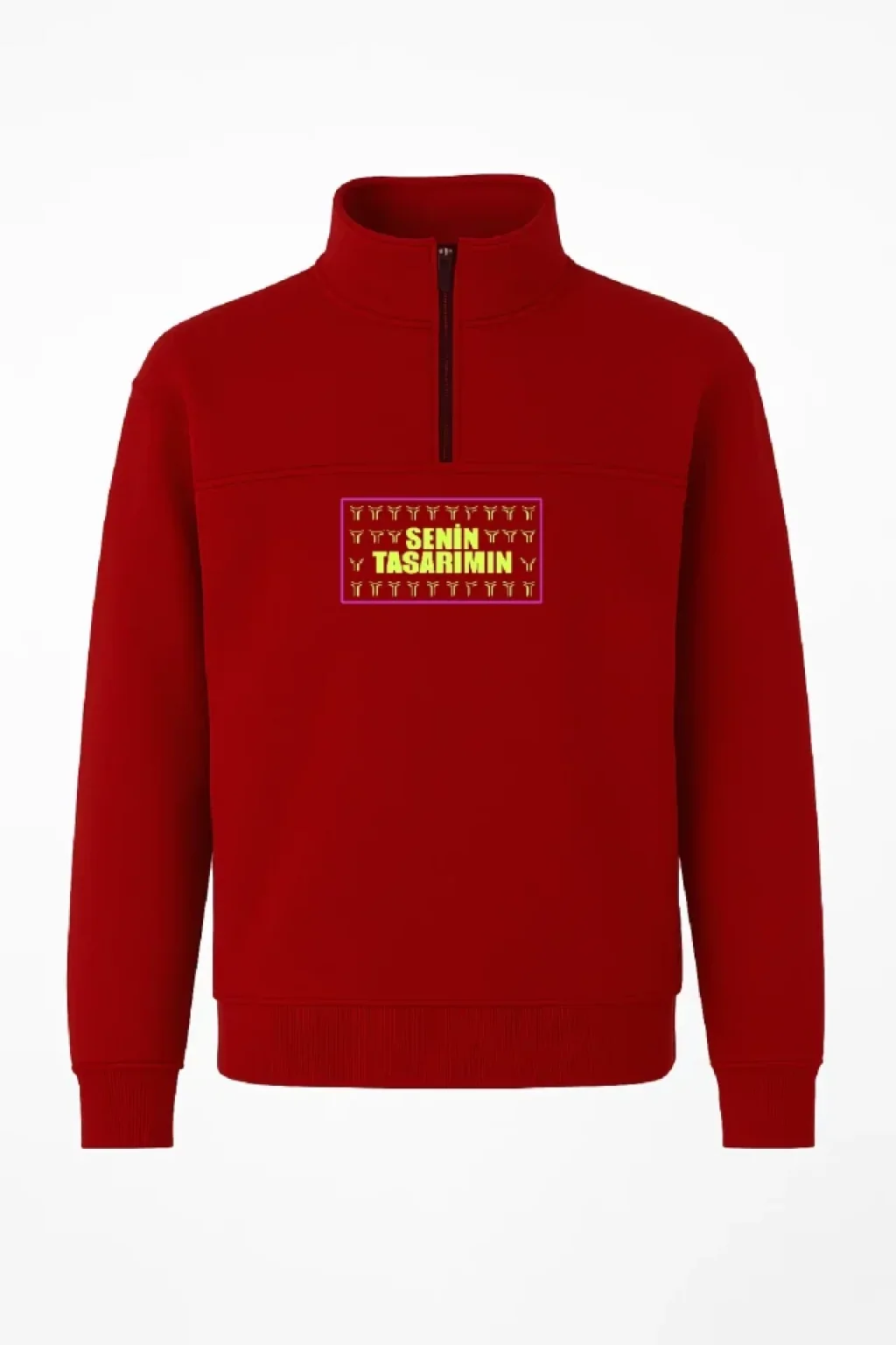 Ön Arka Yarım Fermuarlı Oversize Yakalı Basic SweatShirt - Kırmızı