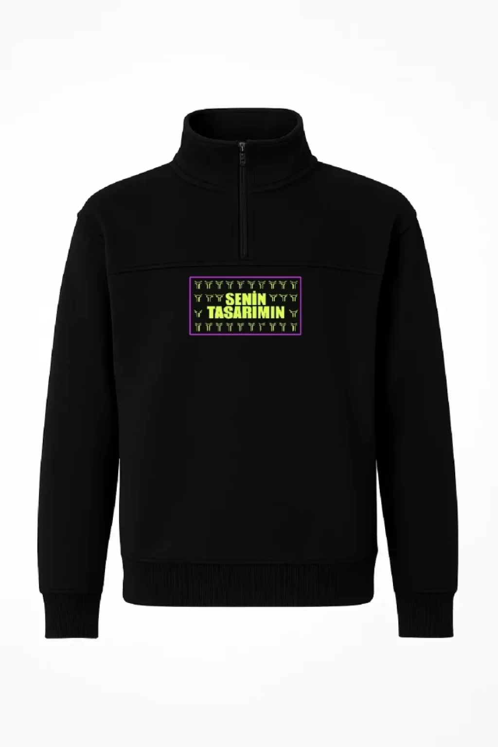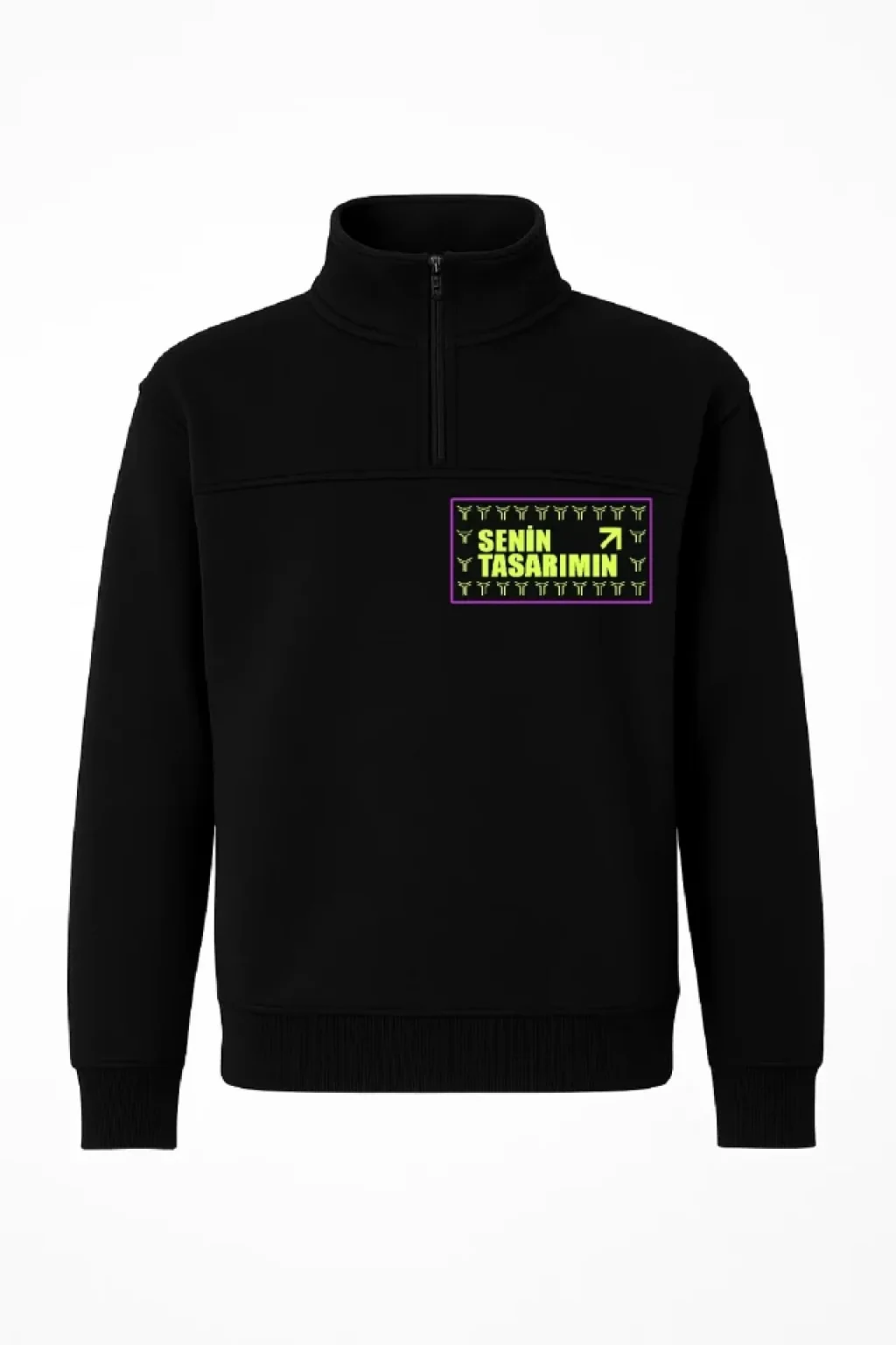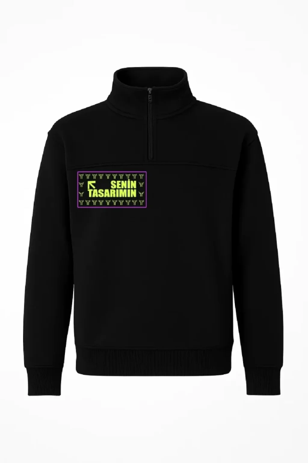 Ön Arka Yarım Fermuarlı Oversize Yakalı Basic SweatShirt - Siyah
