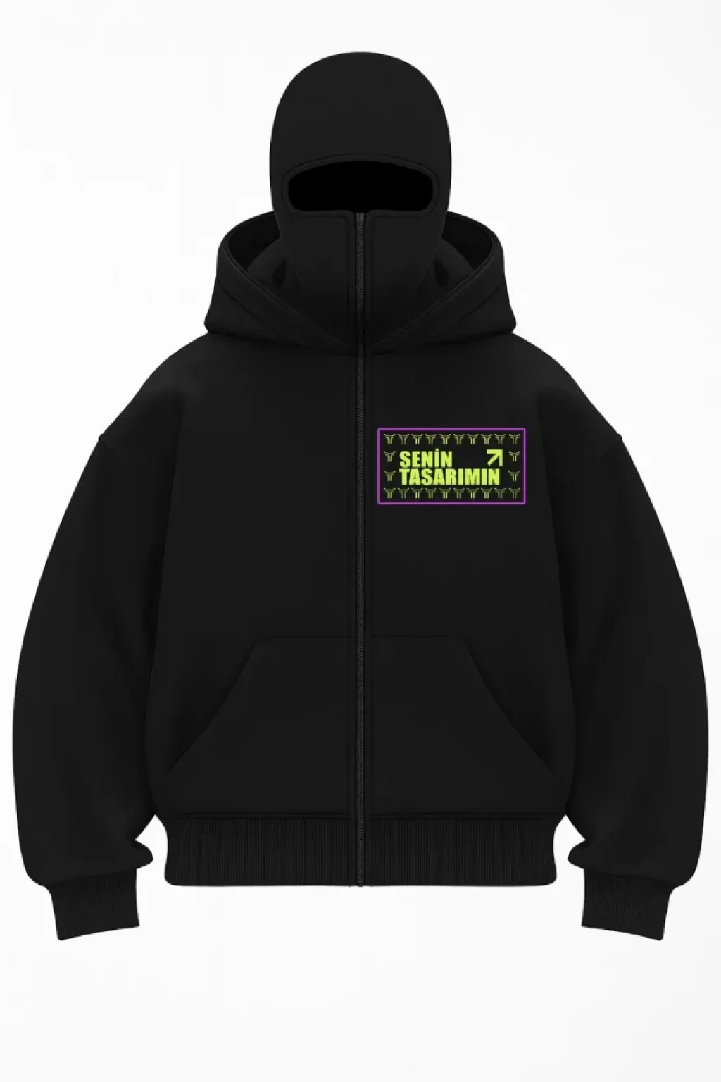Ön Samuray Kapüşonlu ZIP Fermuarlı Kapüşonlu Sizin Tasarımınız SweatShirt - Siyah