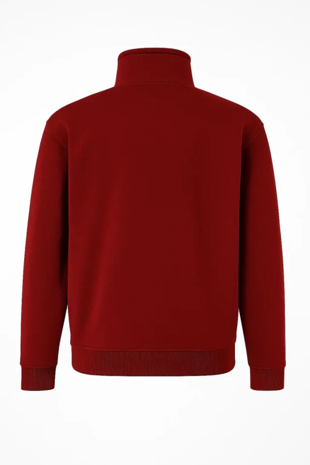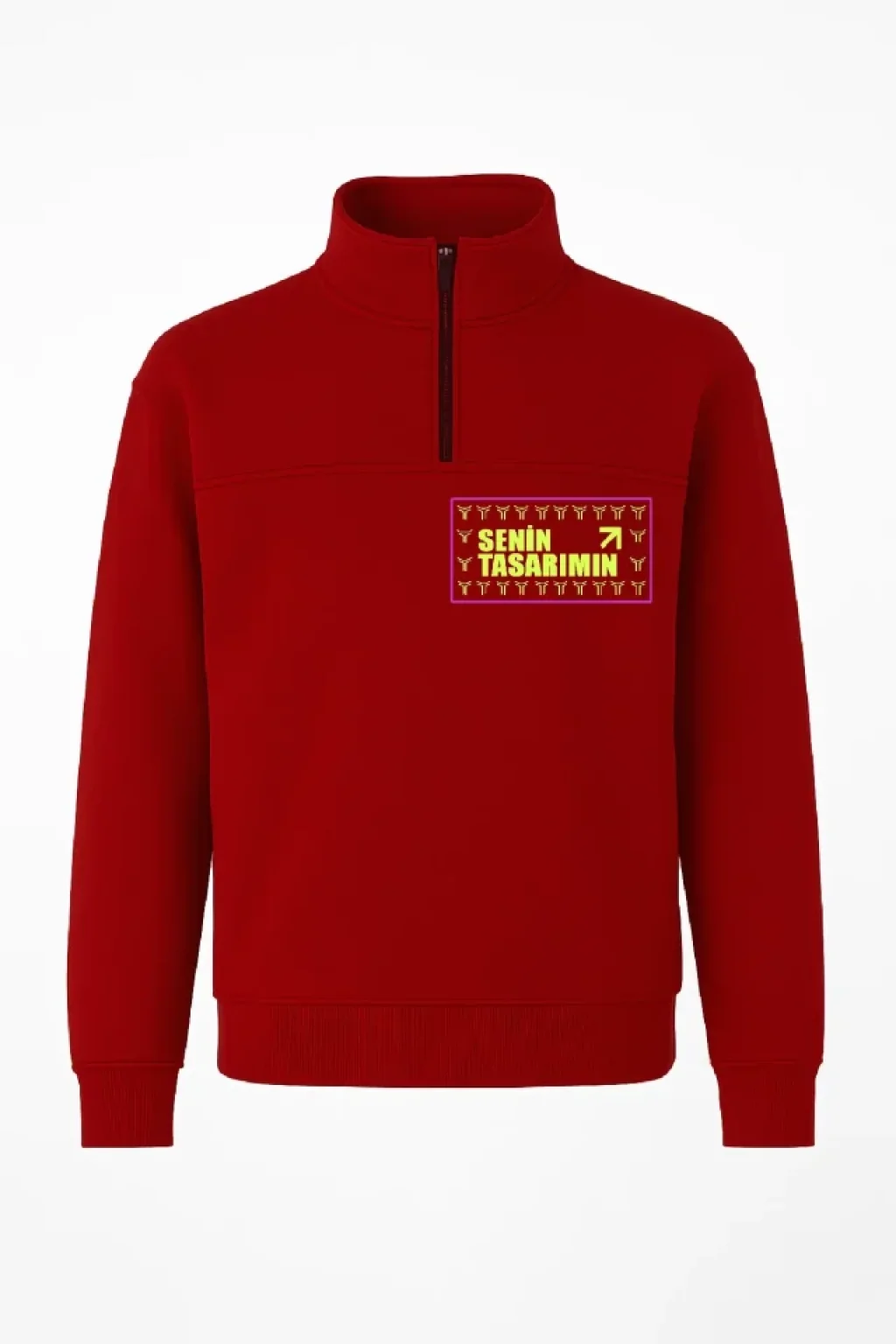 Ön Yarım Fermuarlı Oversize Yakalı Basic SweatShirt - Kırmızı