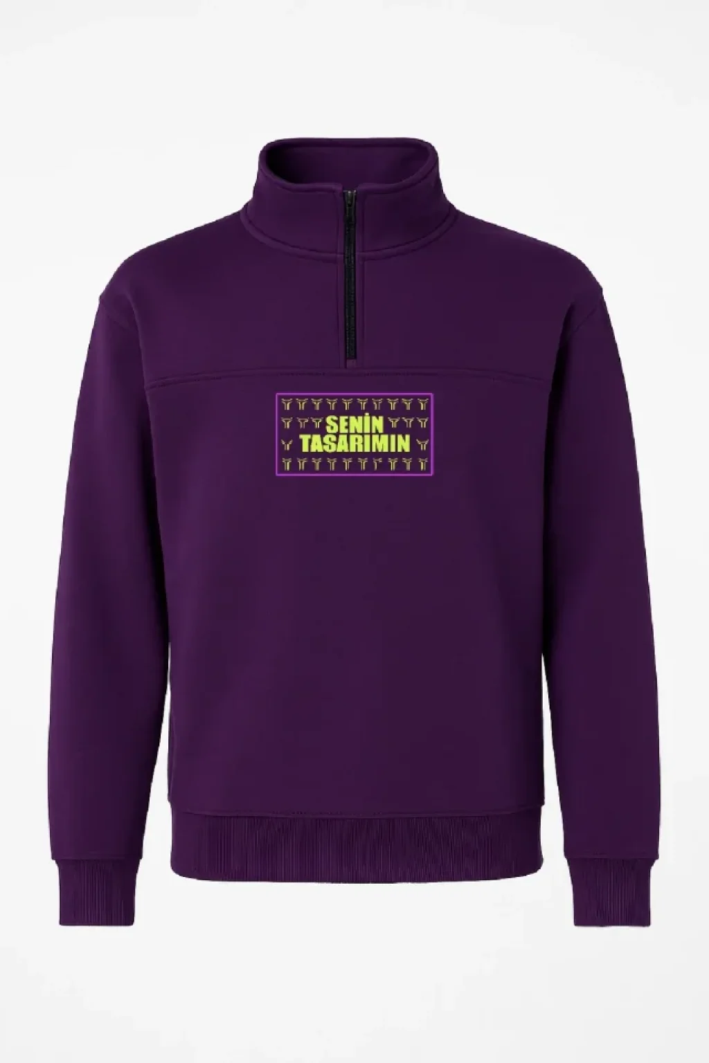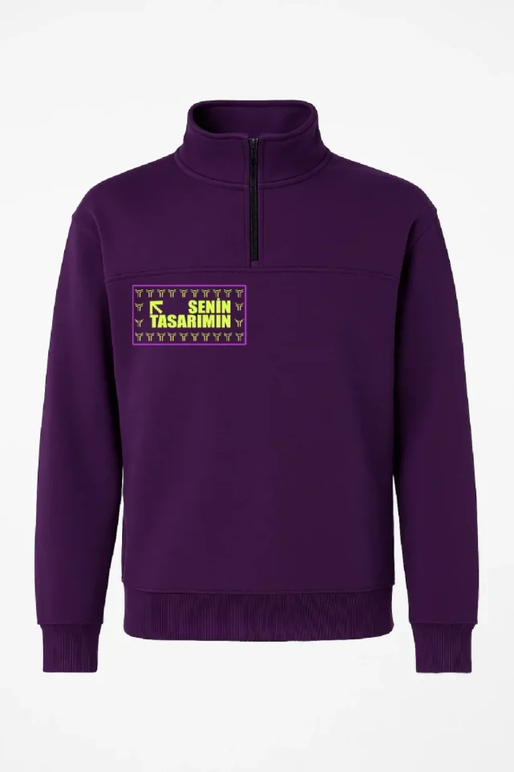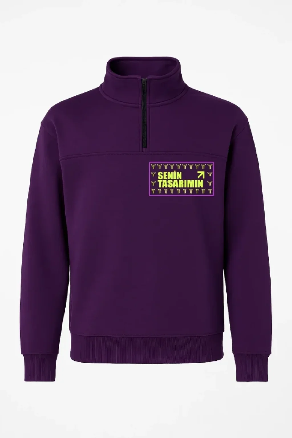 Ön Yarım Fermuarlı Oversize Yakalı Basic SweatShirt - Mor