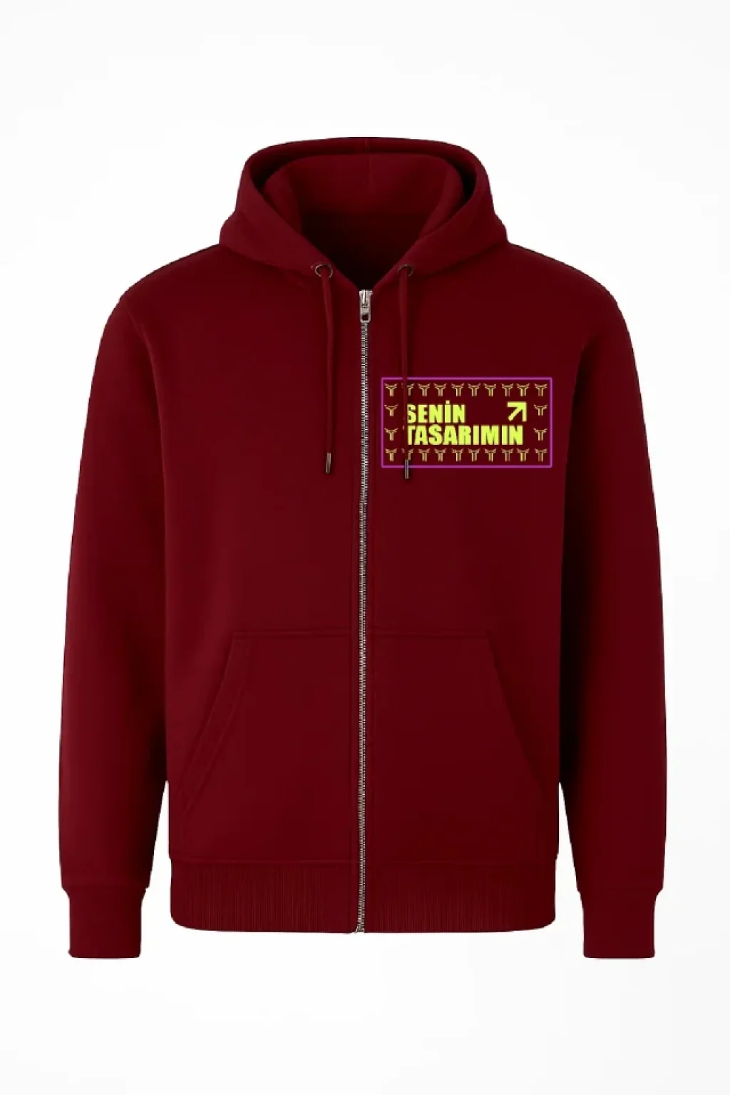 Ön Arka Tam Fermuarlı Kapüşonlu SweatShirt - Bordo