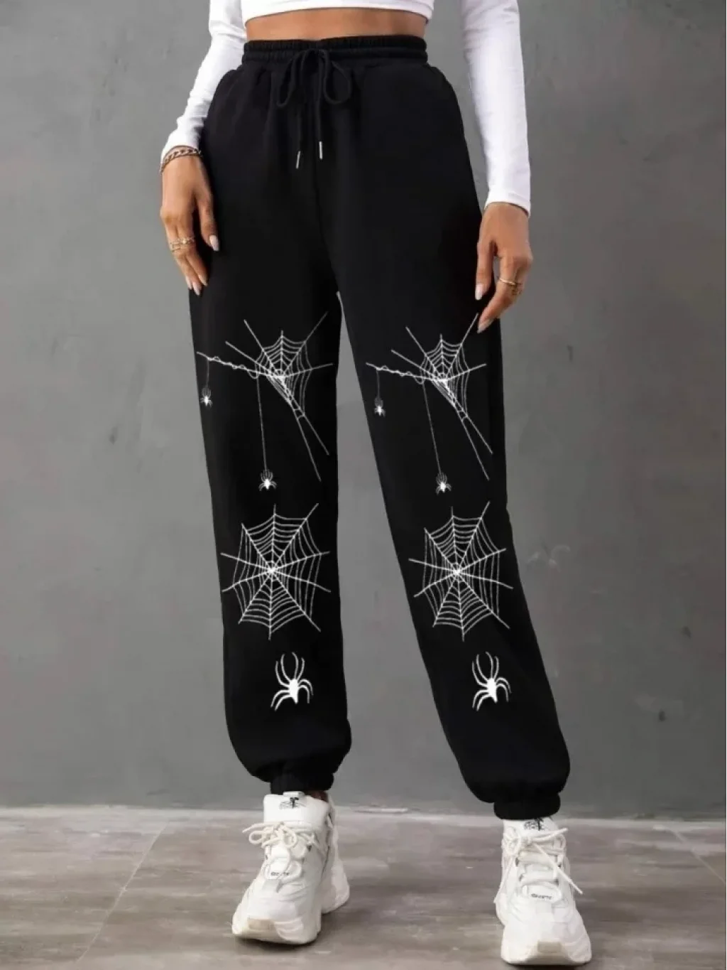 Örümcek Baskılı Eşofman Altı - Siyah