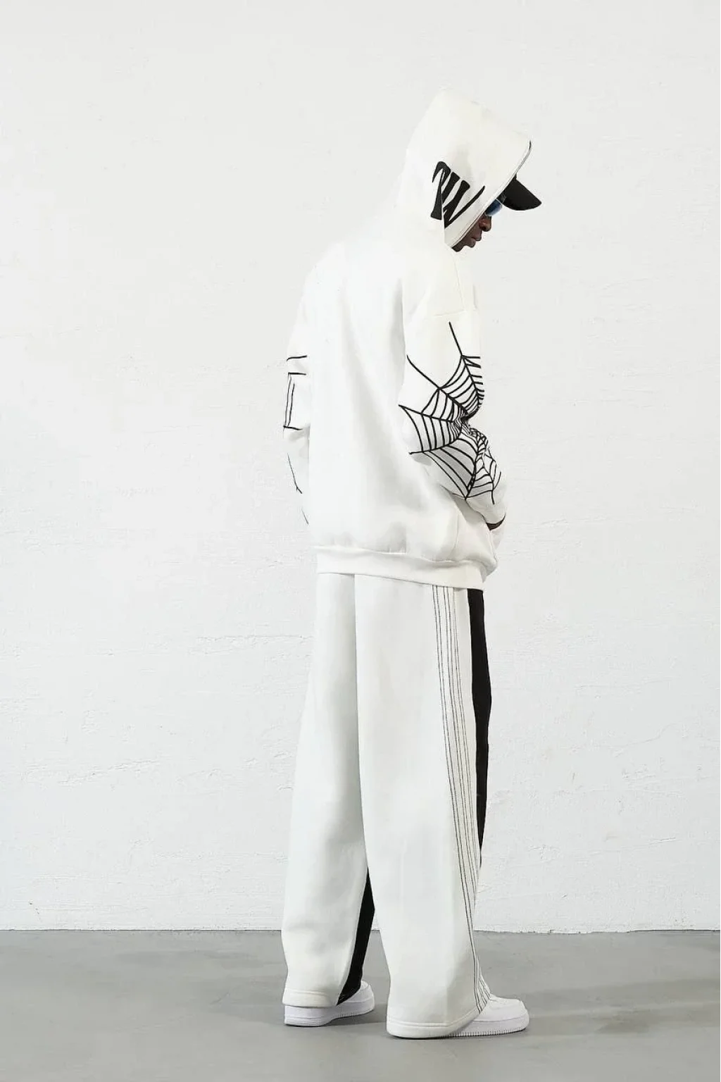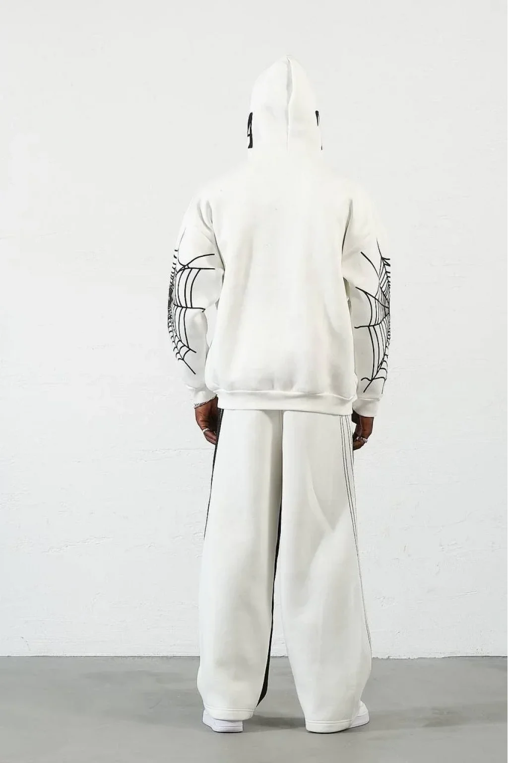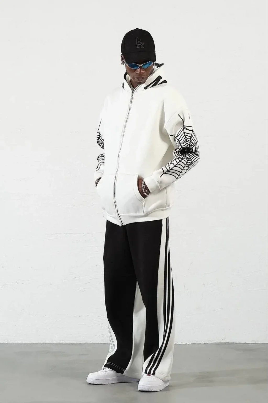 Örümcek Baskılı Zıp Fermuarlı Kapüşonlu Hırka - Beyaz