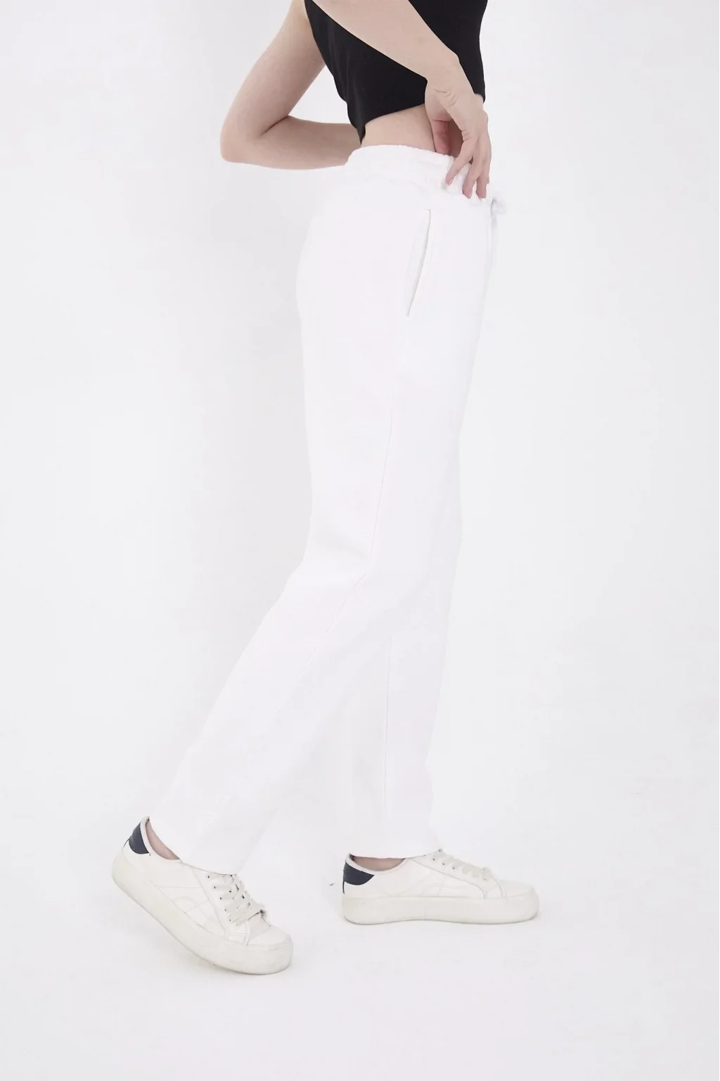 Oversize Boru Paça Baskılı Eşofman Pantolon - Beyaz
