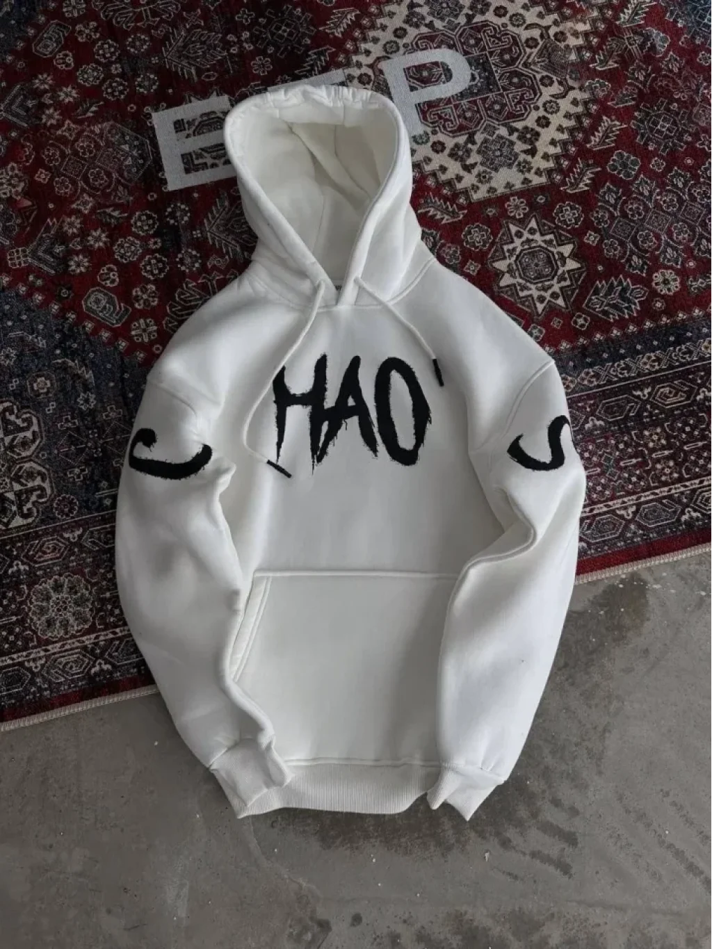 Oversize Kapşonlu Baskılı SweatShirt - Beyaz