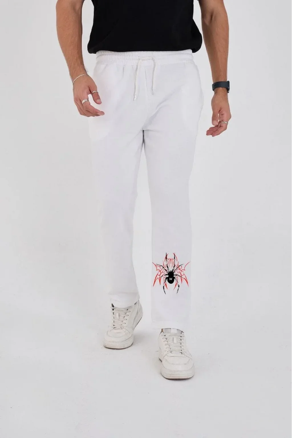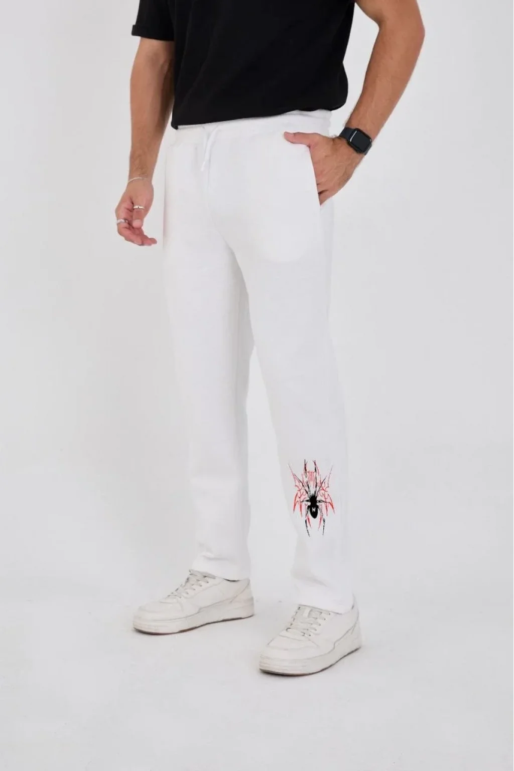 Oversize Üç İplik Baskılı Eşofman Pantolon - Beyaz