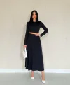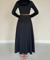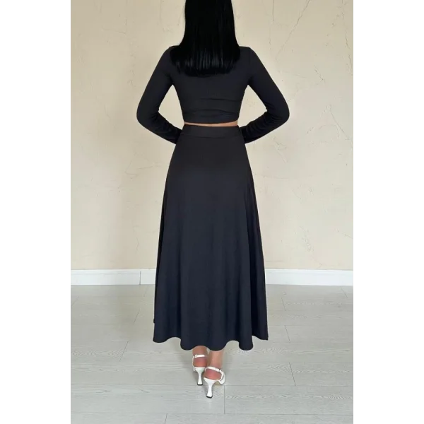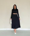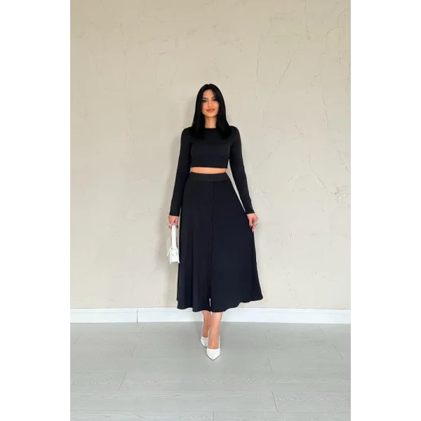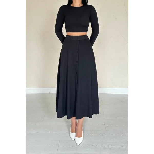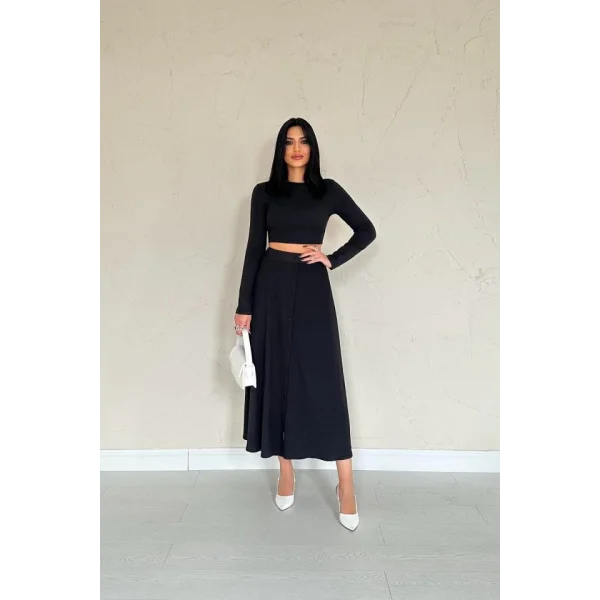 Siyah Fitilli Bluz & Etek Takım