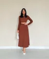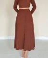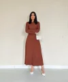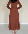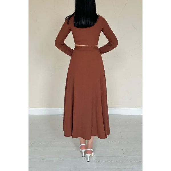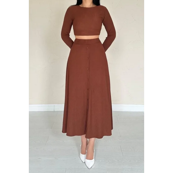 Kahverengi Fitilli Bluz & Etek Takım