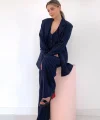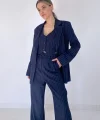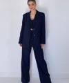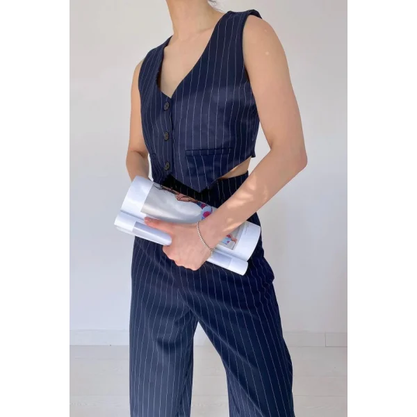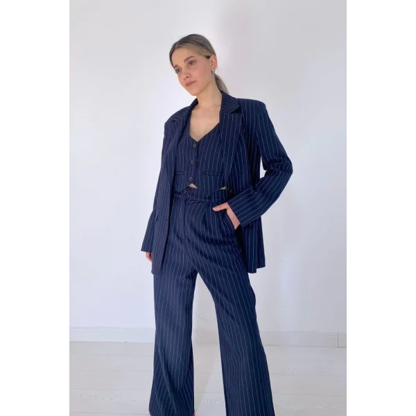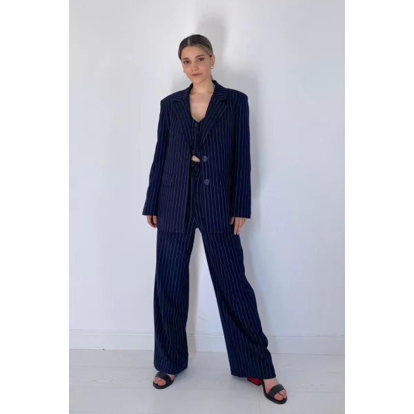 Lacivert Çizgili Ceket & Yelek Ve Pantolon Takım