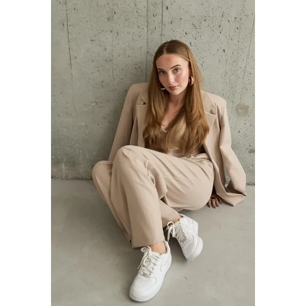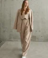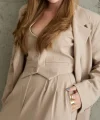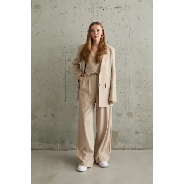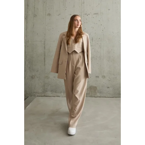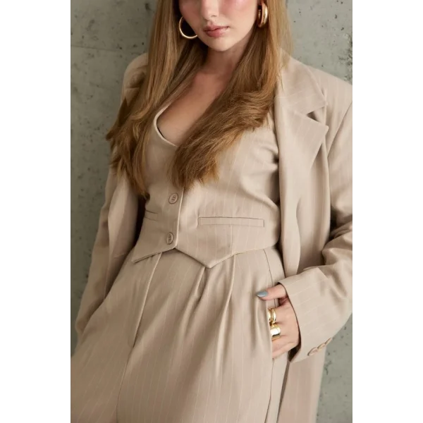 Bej Çizgili Ceket & Yelek Ve Pantolon Takım