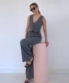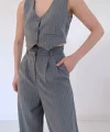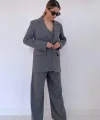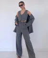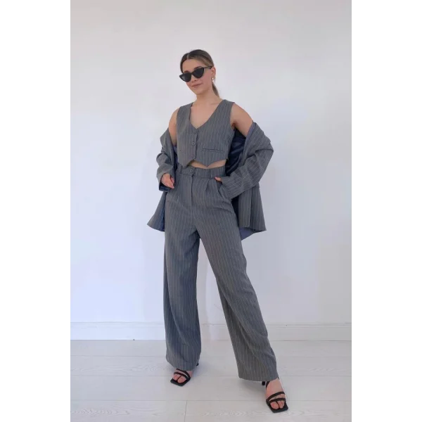 Gri Çizgili Ceket & Yelek Ve Pantolon Takım