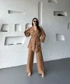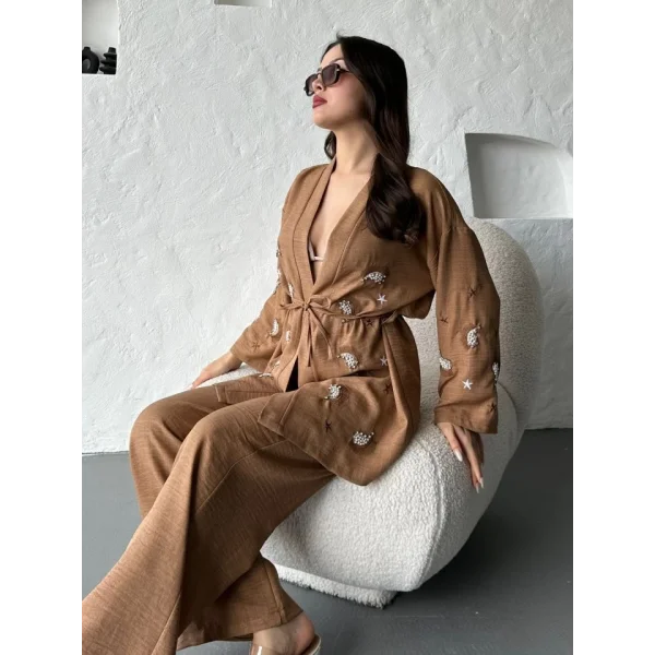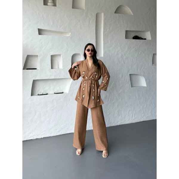 Nakış İşlemeli Kimono & Pantolon İkili Takım