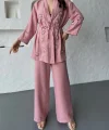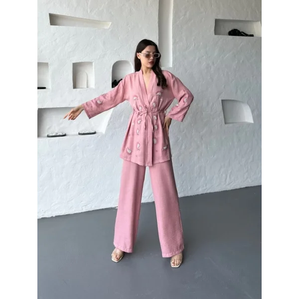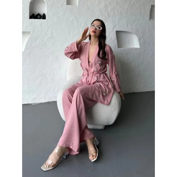 Nakış İşlemeli Kimono & Pantolon İkili Takım