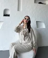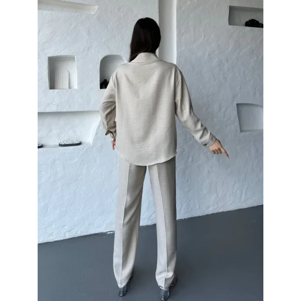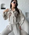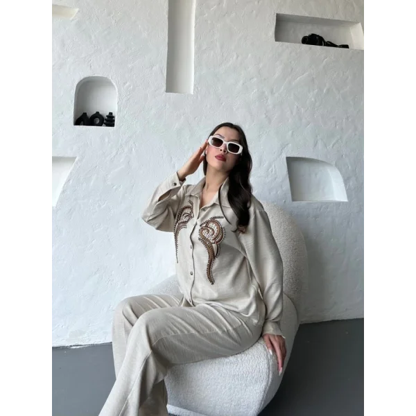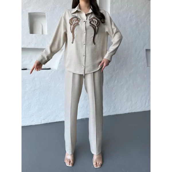 İşleme Detaylı Gömlek & Pantolon Keten İkili Takım