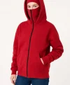 Samuray Ninja Çift Kapüşonlu Hoodie Oversize Kanguru Cepli, Bahar & Kışlık Fermuarlı Sweatshirt- Kırmızı