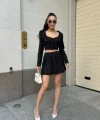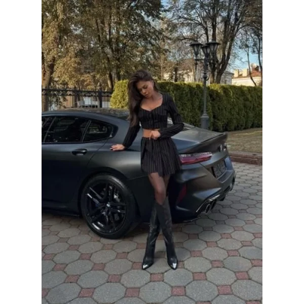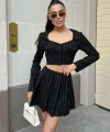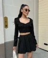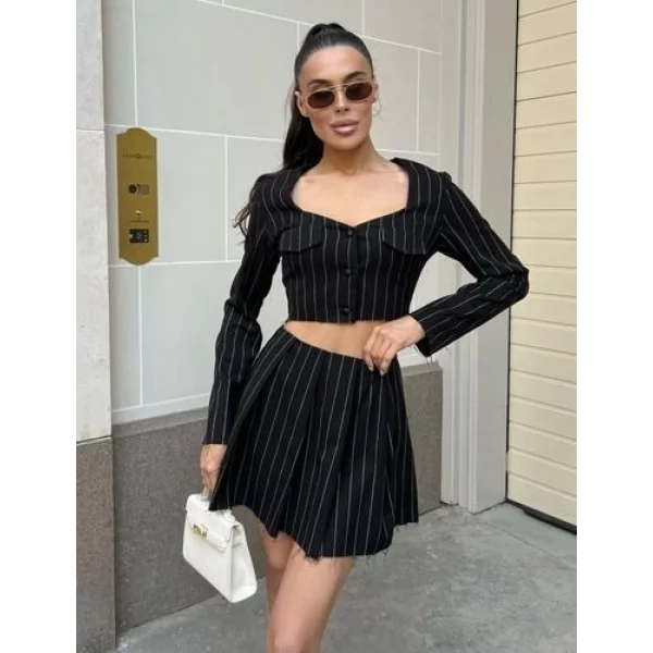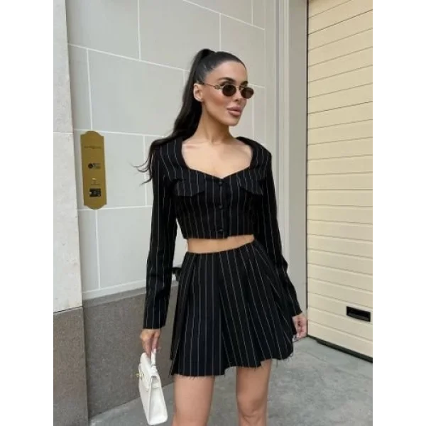 Çizgili Double Kumaş Astarli Etek & Kısa Ceket Takım