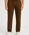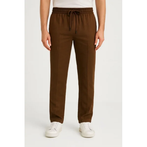 Erkek Keten Pantolon – Cepli, Beli Lastikli Ve Bağcıklı, Nefes Alan Rahat Kalıp, Yazlık Ve Baharlık Günlük Giyim, Şık & Konforlu Boru Paça Model - Kahverengi
