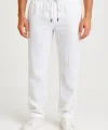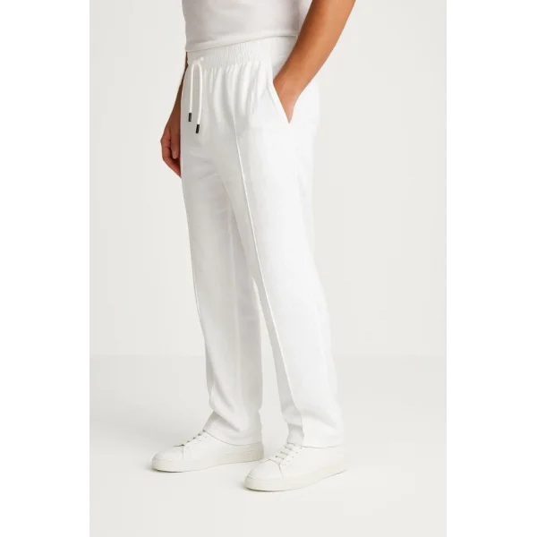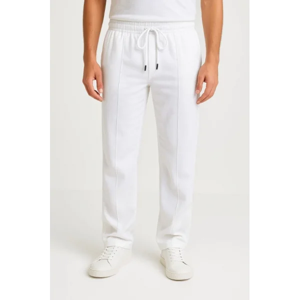 Erkek Keten Pantolon – Cepli, Beli Lastikli Ve Bağcıklı, Nefes Alan Rahat Kalıp, Yazlık Ve Baharlık Günlük Giyim, Şık & Konforlu Boru Paça Model - Beyaz