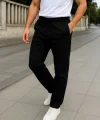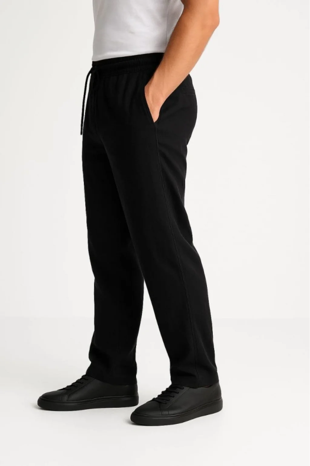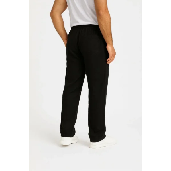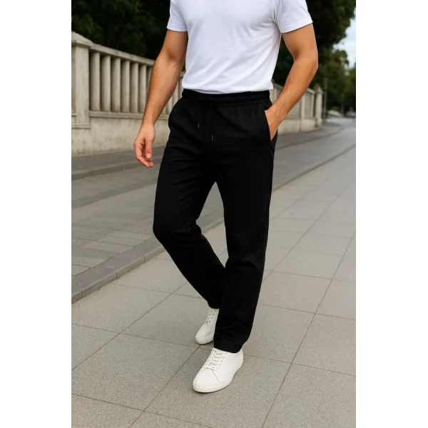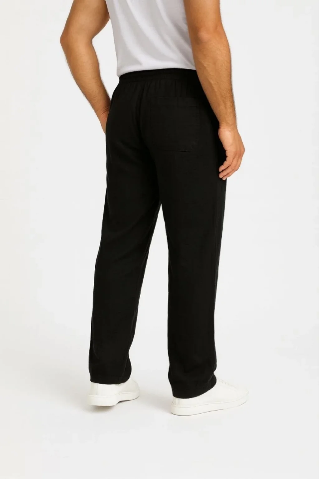 Erkek Keten Pantolon – Cepli, Beli Lastikli Ve Bağcıklı, Nefes Alan Rahat Kalıp, Yazlık Ve Baharlık Günlük Giyim, Şık & Konforlu Boru Paça Model - Siyah