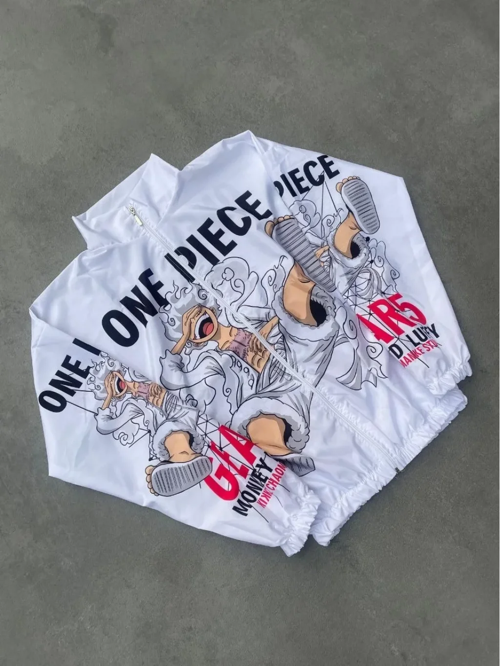 Paraşüt Kumaş Fermuarlı Dijital Baskılı Rüzgarlık - Beyaz