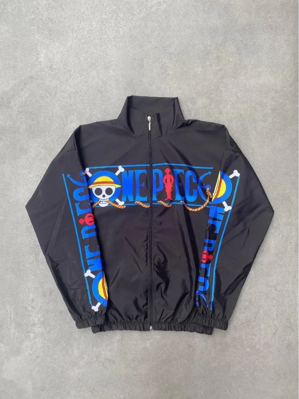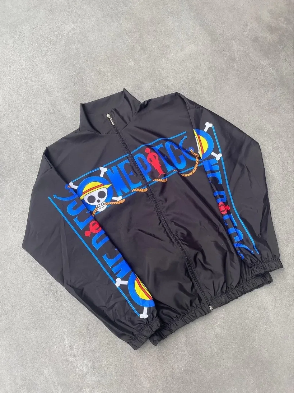 Paraşüt Kumaş Fermuarlı Dijital Baskılı Rüzgarlık - Siyah
