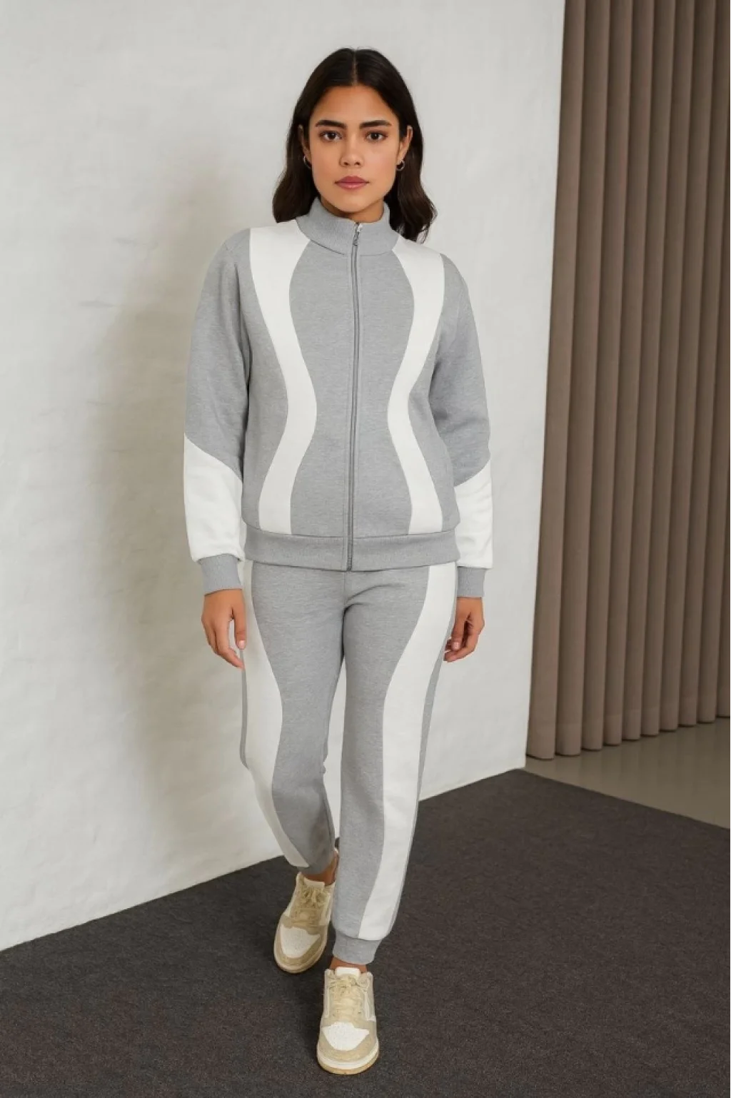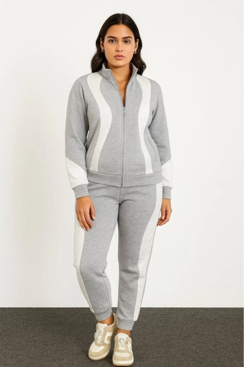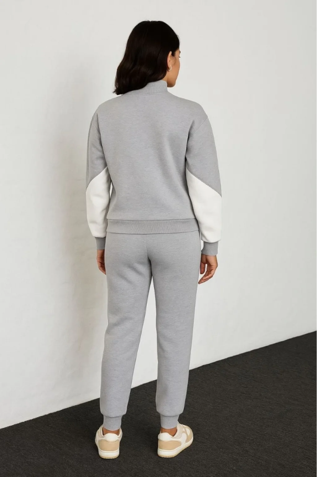 Premium Parçalı Eşofman Takım - Dik Yaka Fermuarlı Sweatshirt - Gri