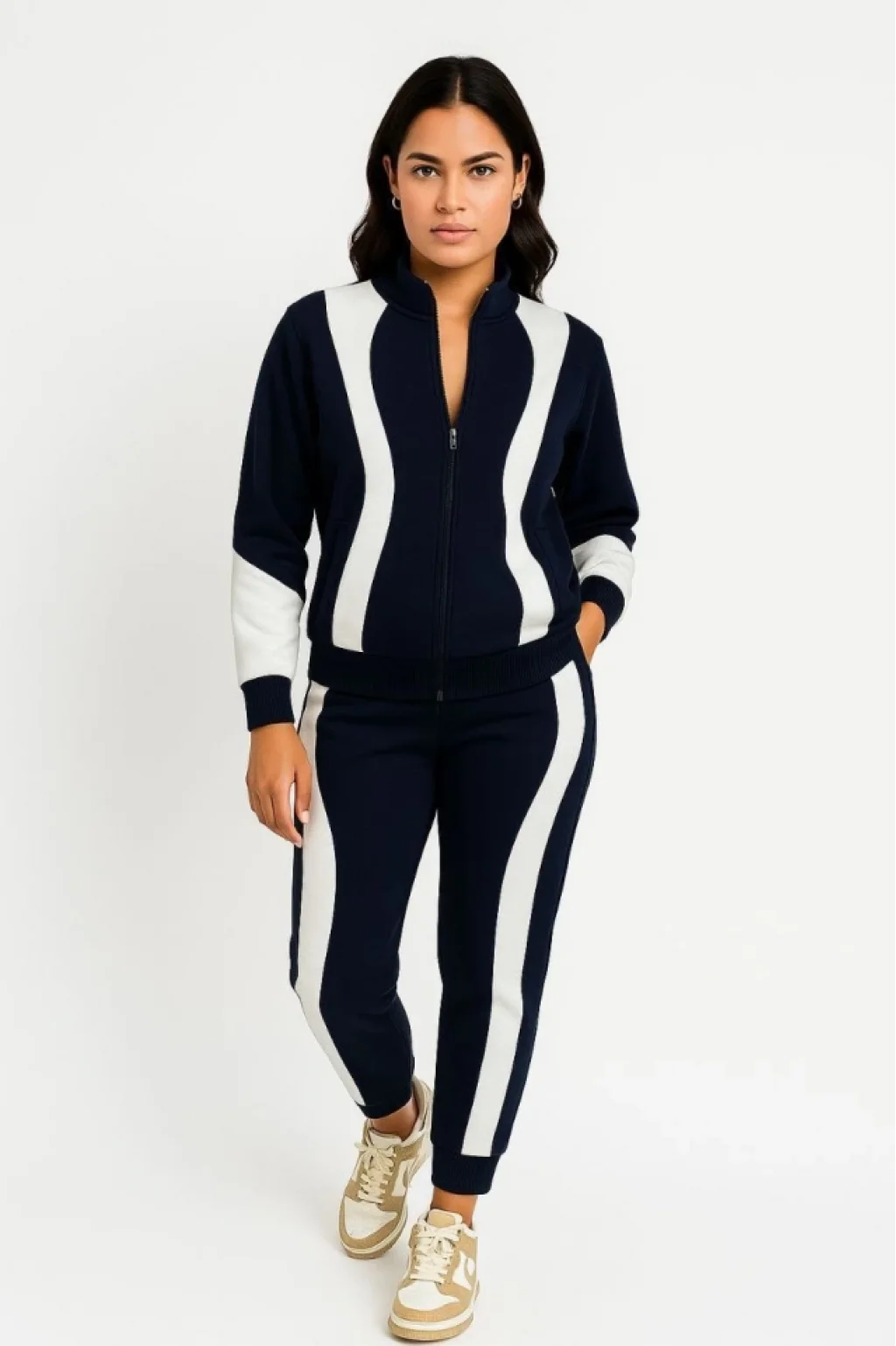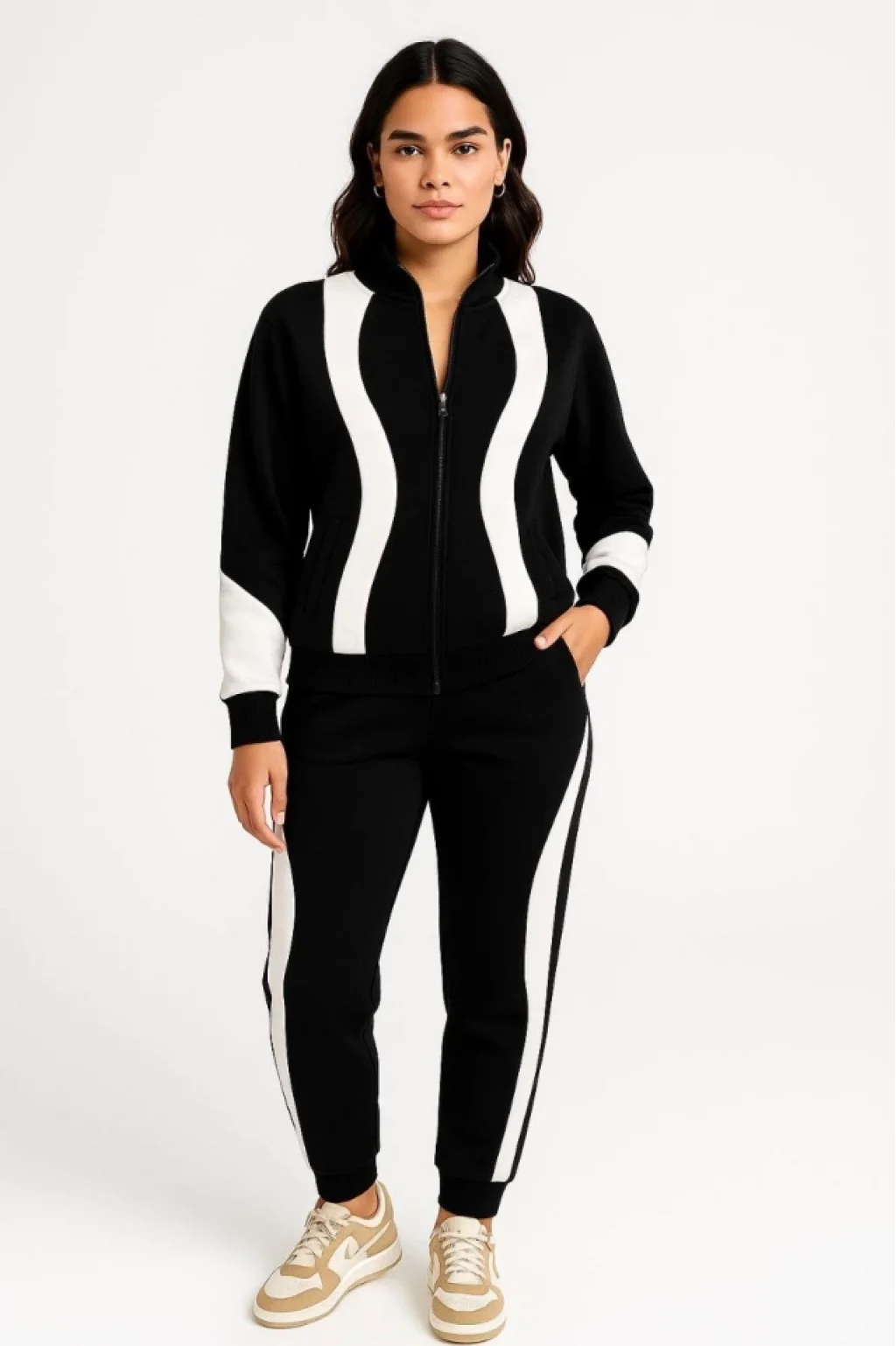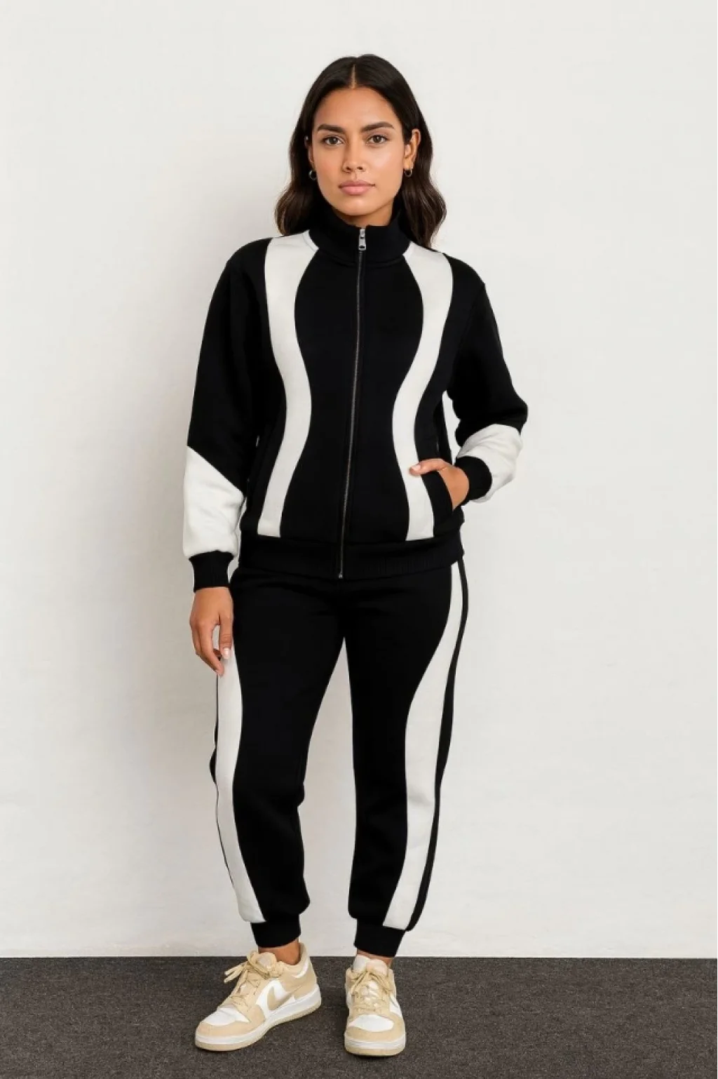 Premium Parçalı Eşofman Takım - Dik Yaka Fermuarlı Sweatshirt - Siyah