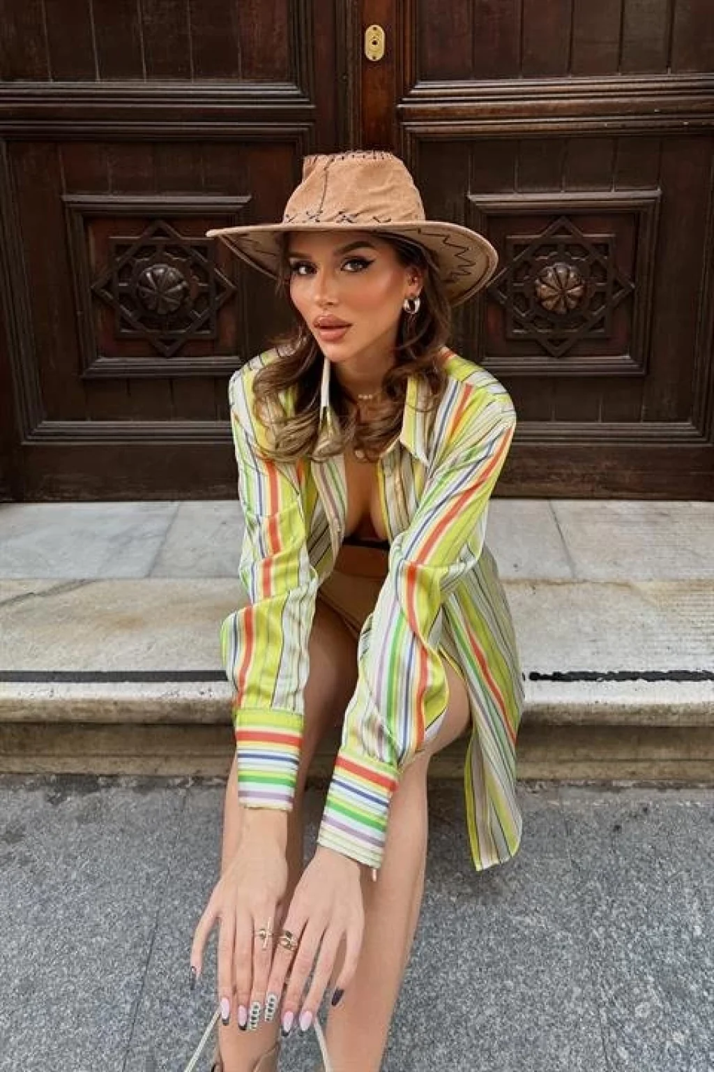 Modelin Ölçüleri: Boy:165, Kg:55, Göğüs:90, Bel:72, Kalça: 100