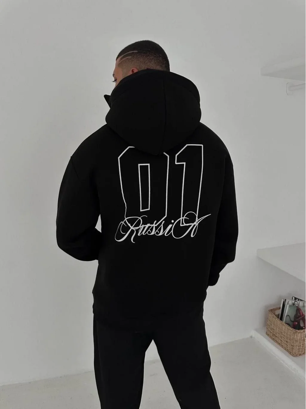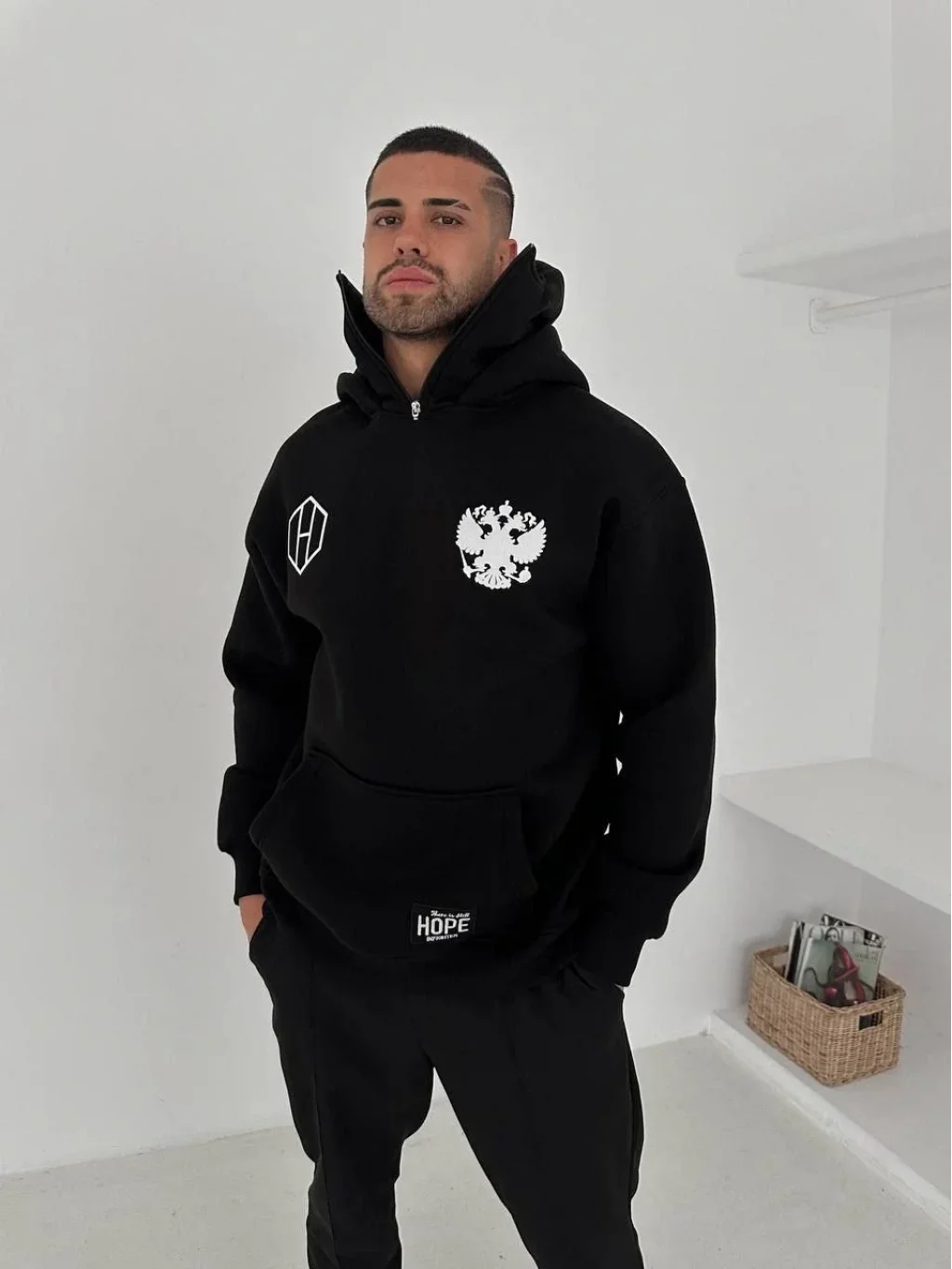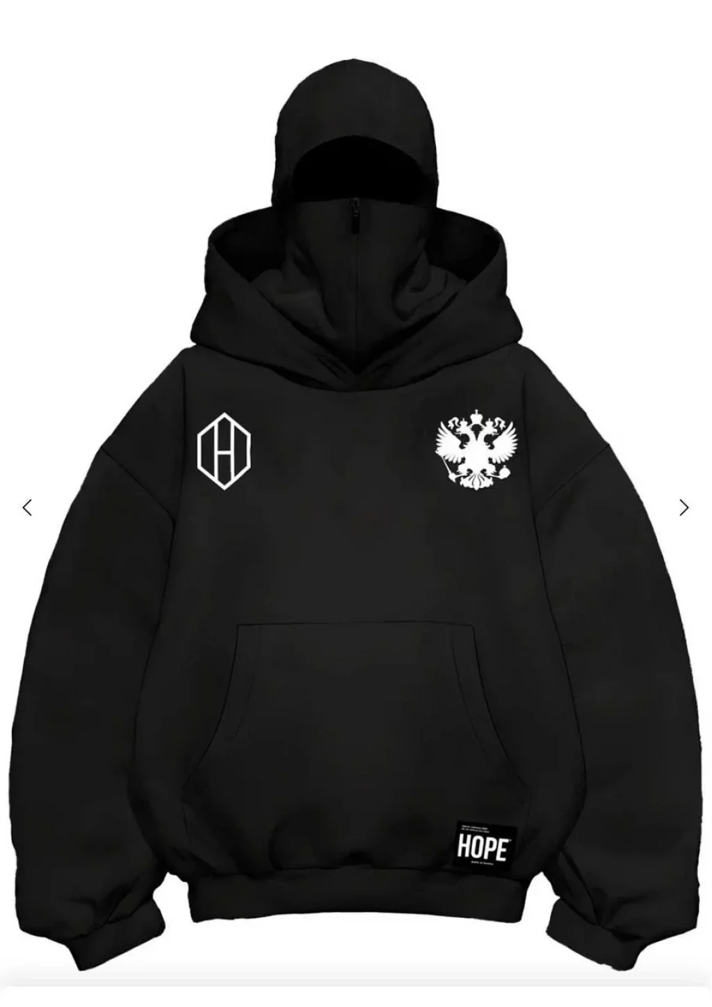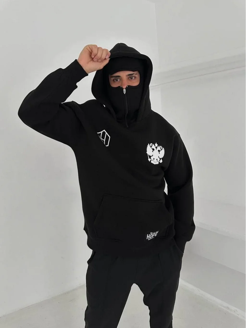 Samuray Ninja Çift Kapşonlu ZIP Fermuarlı Kanguru Çepli Tam Fermuarlı Hoodie ön ve Arka Baskılı Maske Detaylı Swetshirt - Siyah