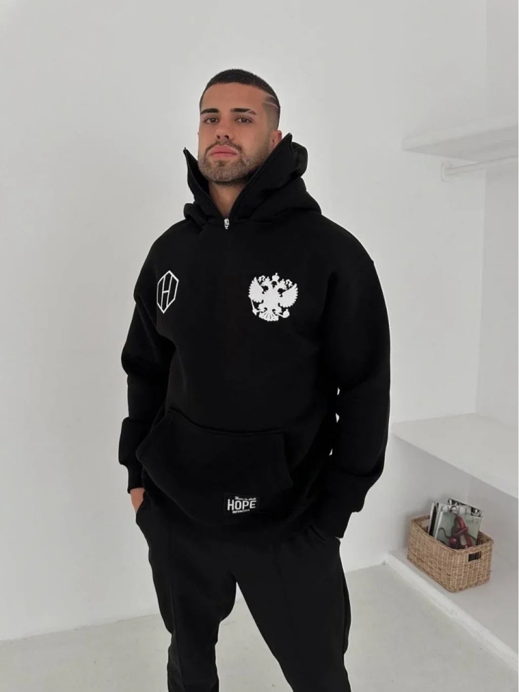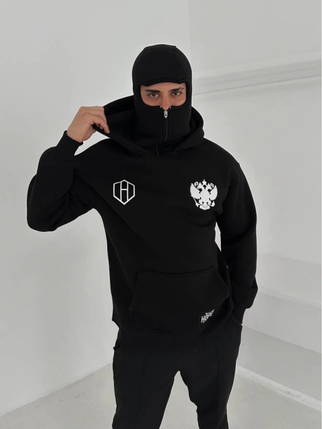 Samuray Ninja Çift Kapşonlu ZIP Fermuarlı Kanguru Çepli Tam Fermuarlı Hoodie ön Ve Arka Baskılı Maske Detaylı Swetshirt - Siyah