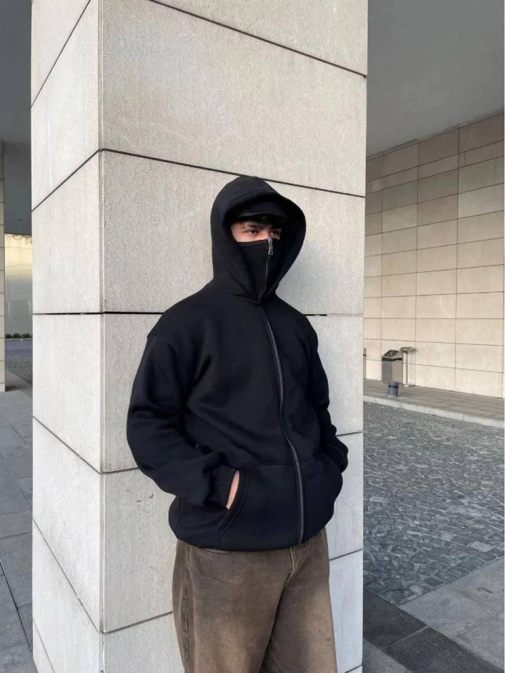 Samuray Ninja Çift Kapşonlu ZIP Fermuarlı Kanguru Çepli Tam Fermuarlı Hoodie Swetshirt - Siyah