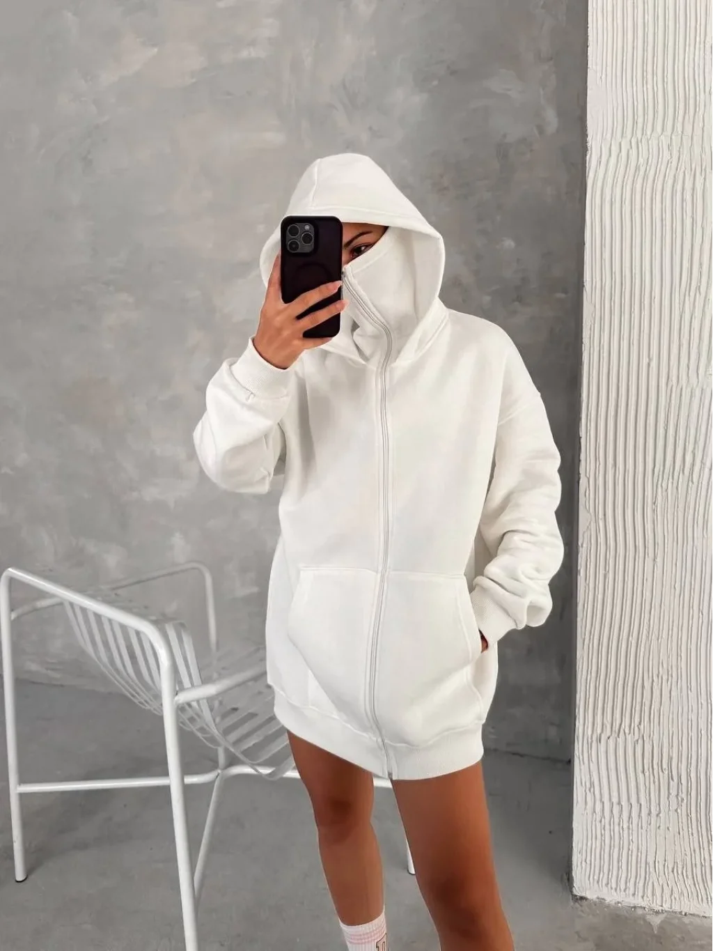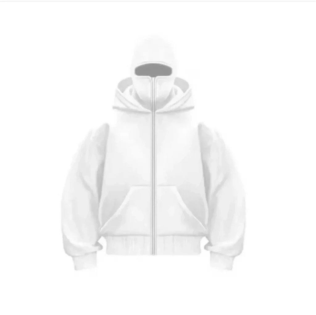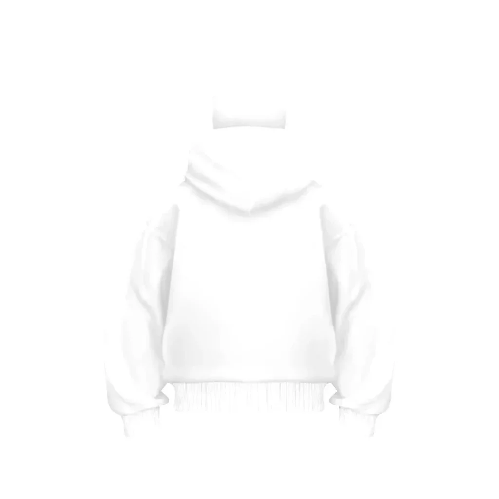 Samuray ZIP Fermuarlı Kapüşonlu SweatShirt- Beyaz