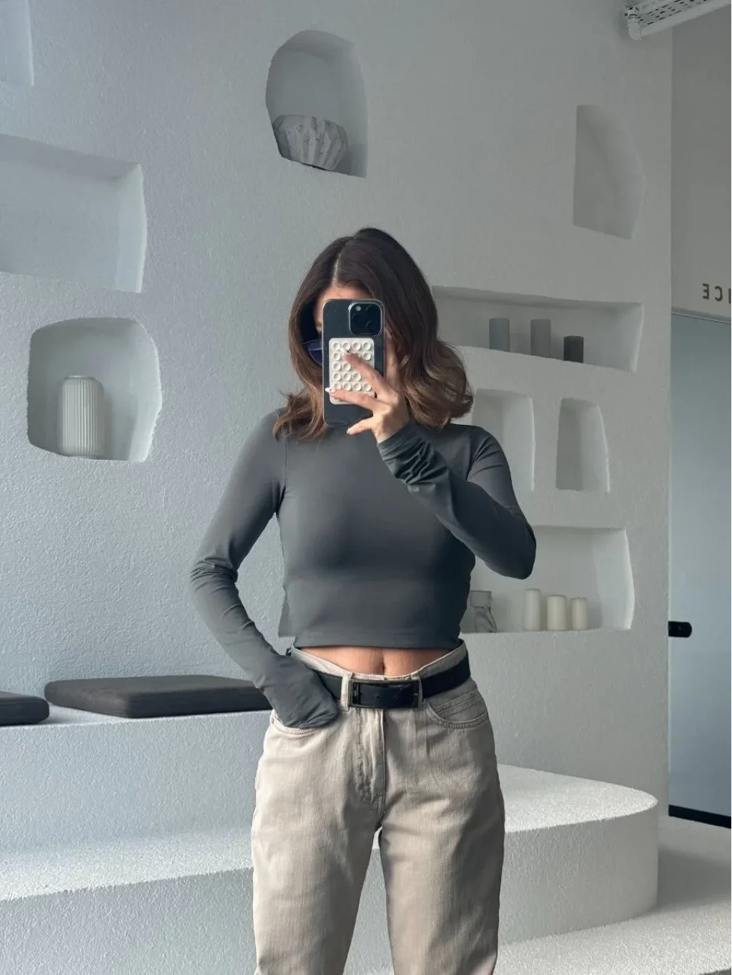 Sırt Dekoltelı Uzun Kollu Crop - Antrasit