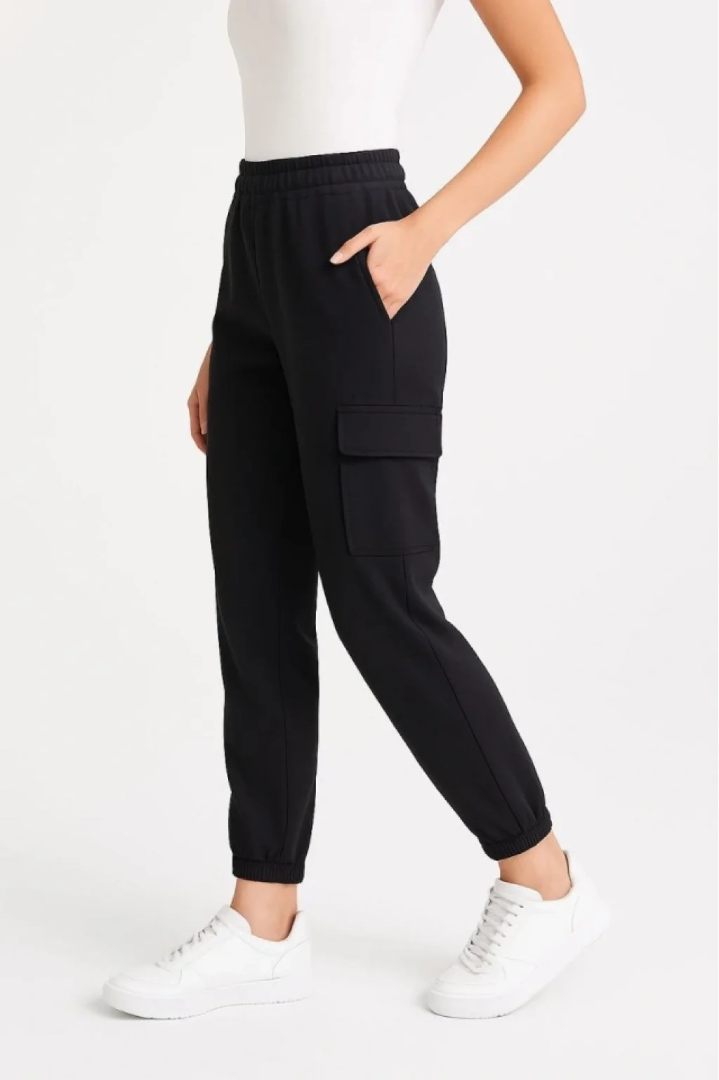 Siyah Jogger Eşofman Altı Rahat Kalıp, Kargo Cepli, Lastikli Paça, Günlük Spor Pantolon - Siyah