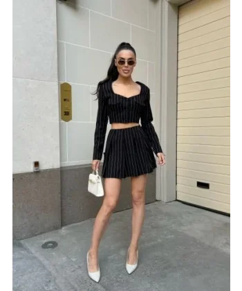 Kadın Uzun Kollu Kaşkorse Crop Ve Etek Takım