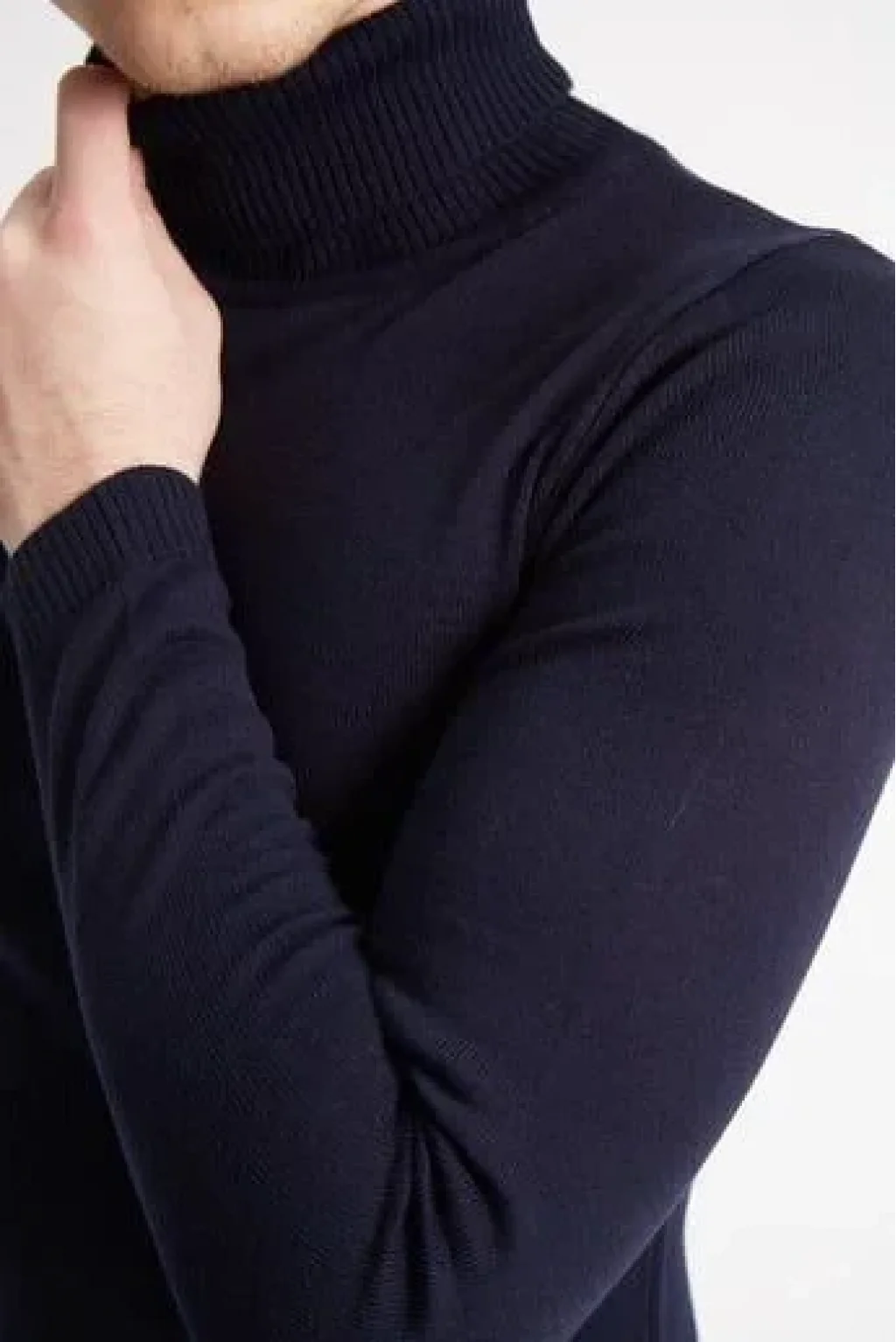 Tam Boğazlı Balıkçı Yaka Dokuma Triko - Lacivert