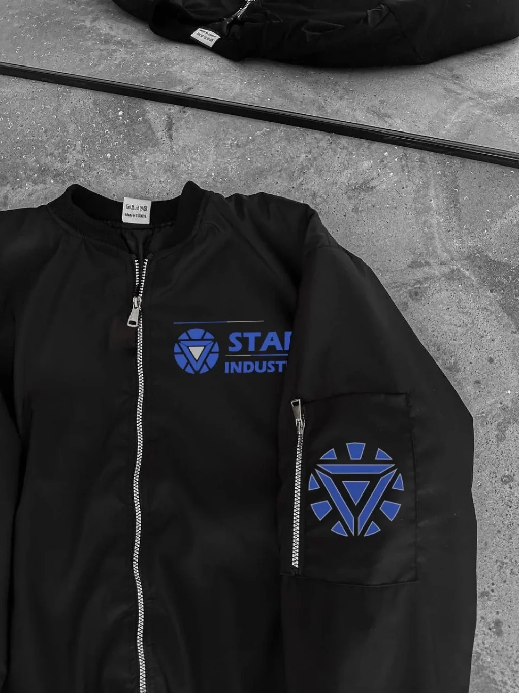 Tam Kalıp Uzun Kol Baskılı Bomber Ceket - Siyah