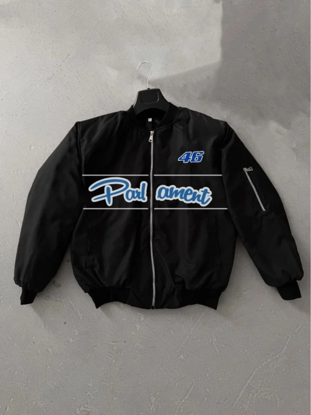 Tam Kalıp Uzun Kol Baskılı Bomber Ceket - Siyah