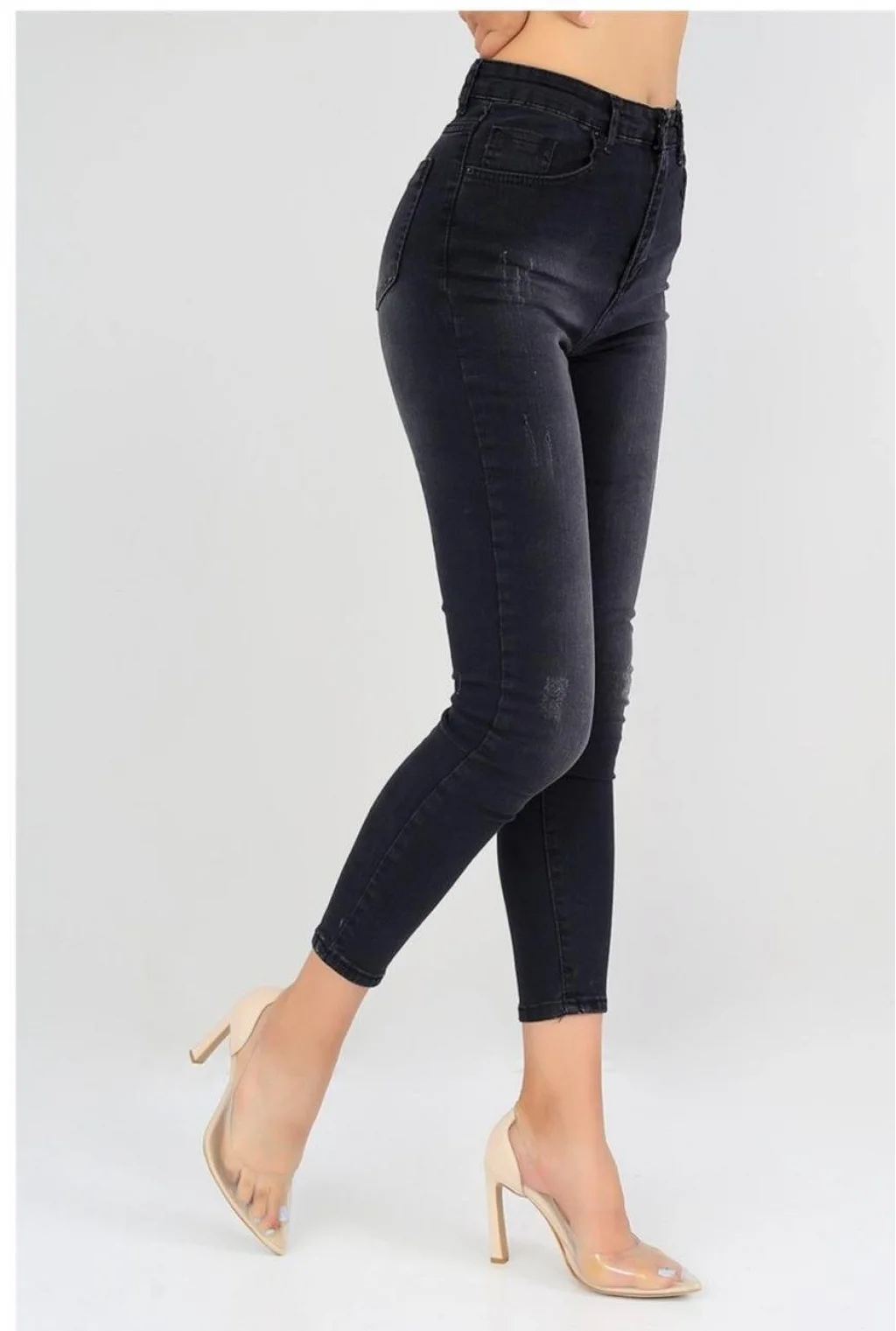 Tırnak Işlemli Yüksek Bel Likralı Kot Pantolon86cm