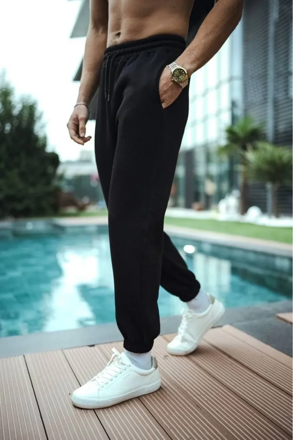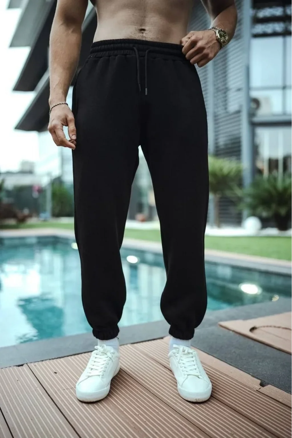 Üç İplik Basic Lastikli Eşofman Pantolon - Siyah