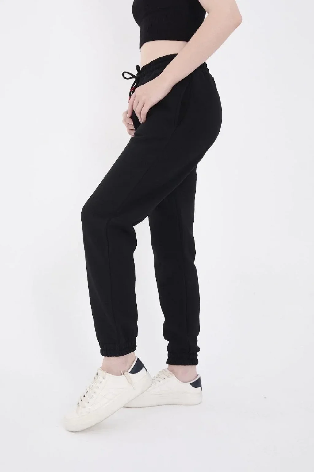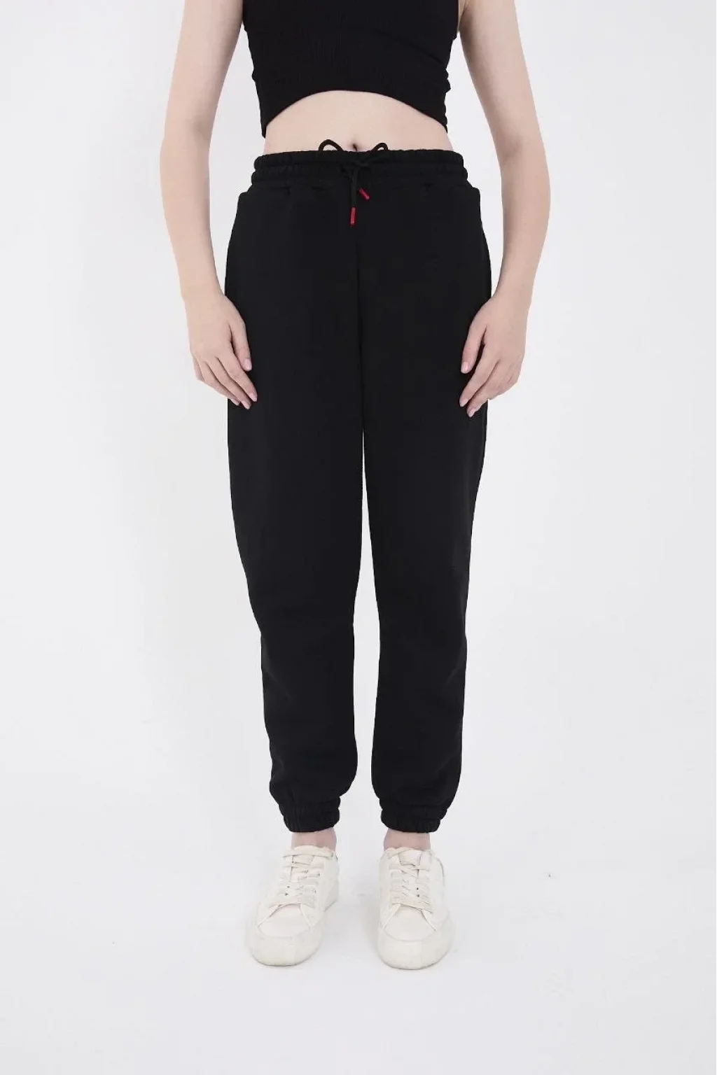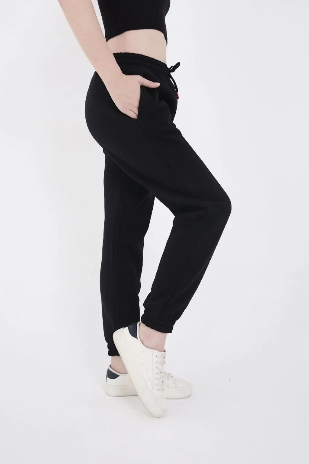 Üç İplik Basic Lastikli Eşofman Pantolon - Siyah