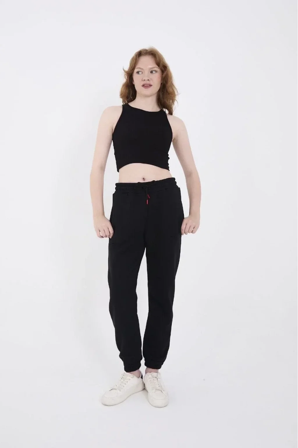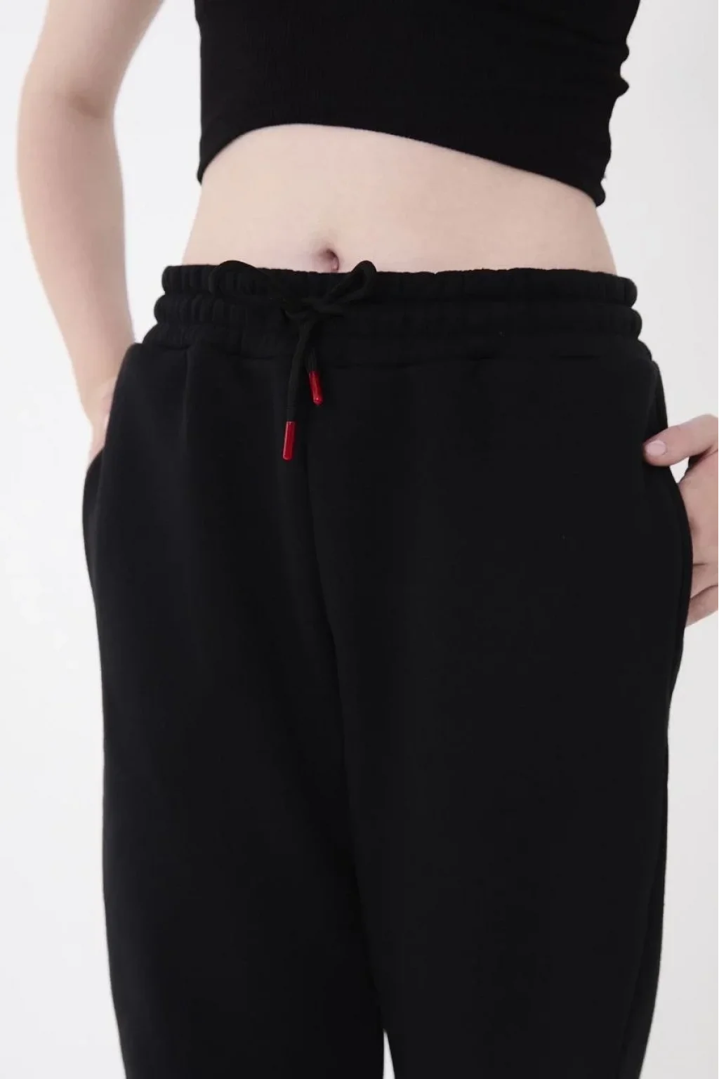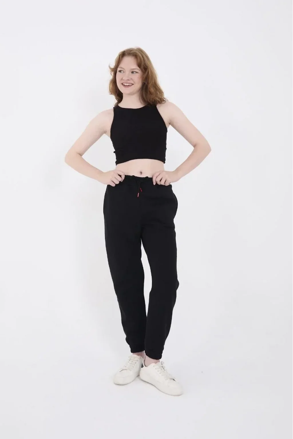 Üç İplik Basic Lastikli Eşofman Pantolon - Siyah